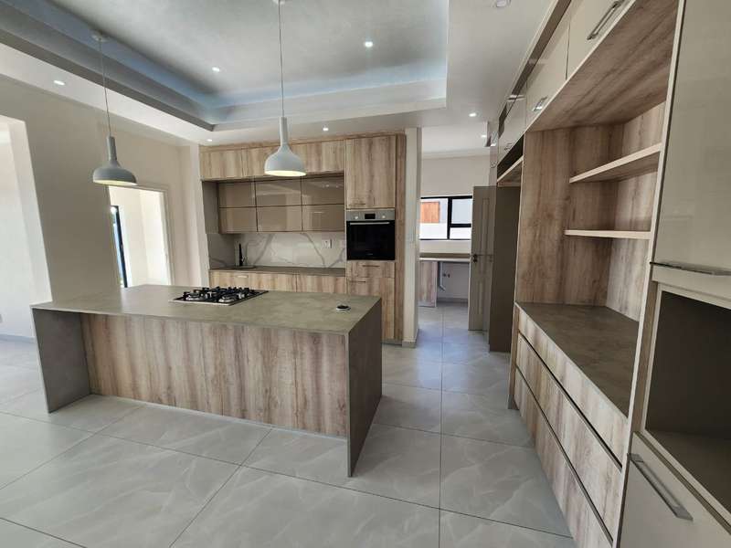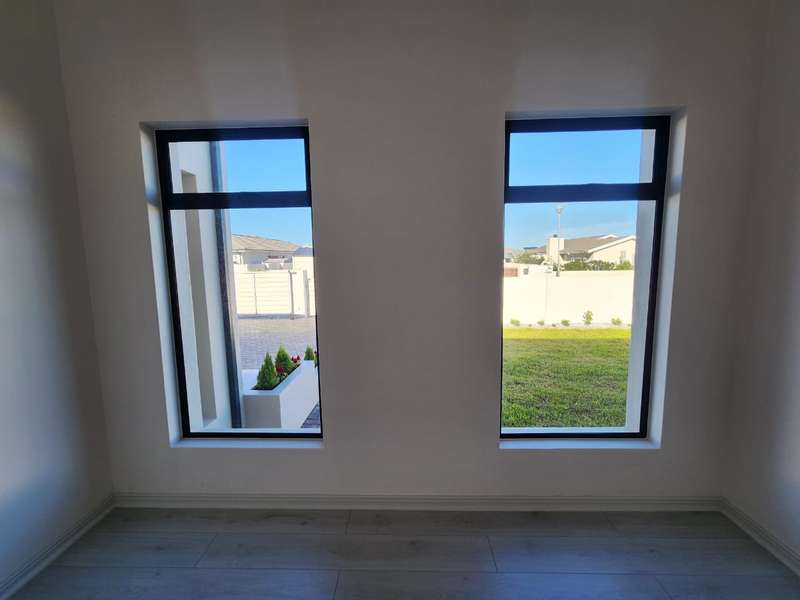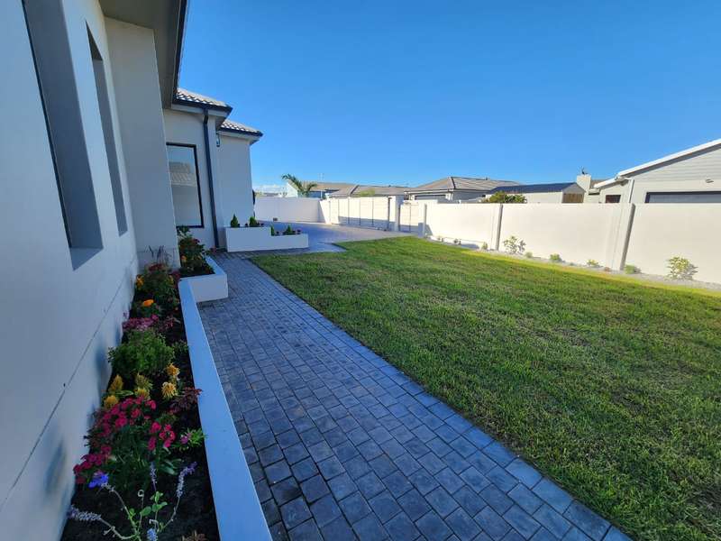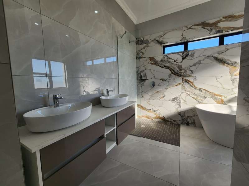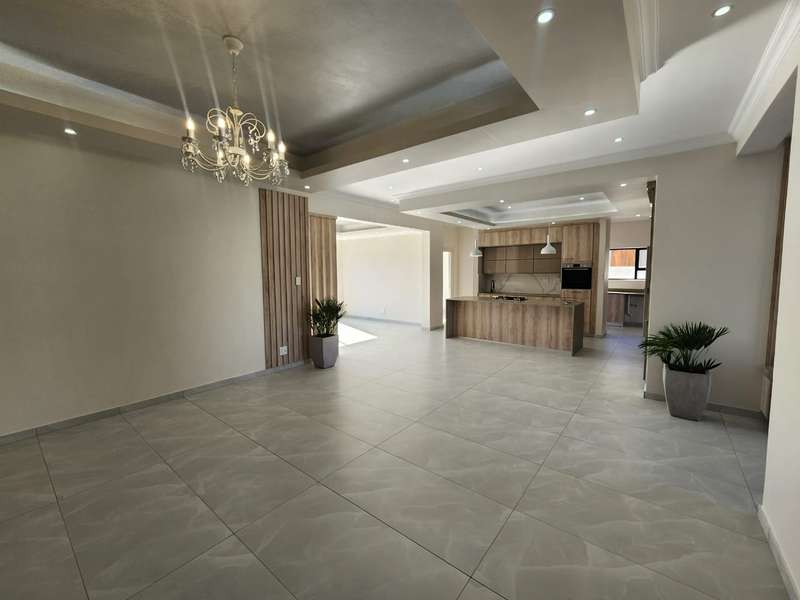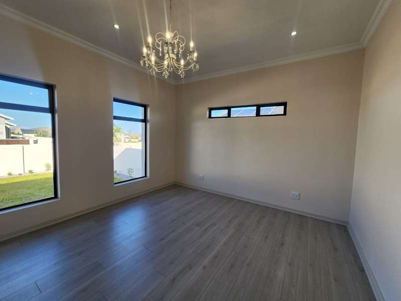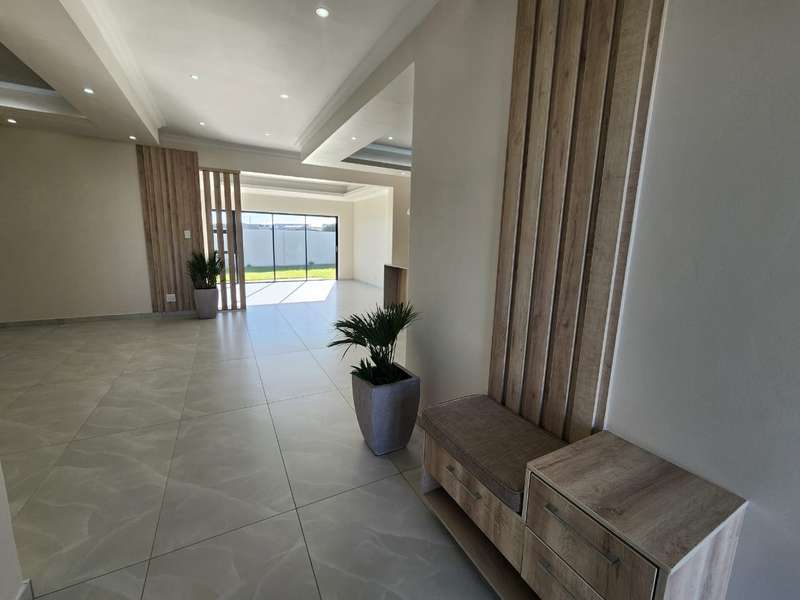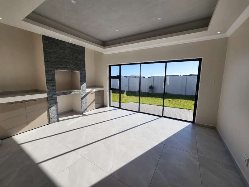 Stunning Newly Built Home with Premium Finishes This exceptional newly built home offers a perfect blend of luxury, modern design, and functionality. From top-of-the-line finishes to a spacious, open-plan layout, every detail has been carefully crafted for a stylish and comfortable living experience. This property offers: • Open-Plan Living: The spacious design seamlessly integrates a sleek kitchen, living area, and a dedicated braai room, making it ideal for both relaxation and entertaining. • Modern Kitchen: The modern kitchen is a chef's dream, featuring a gas stove, a separate scullery, and a laundry area, ensuring convenience and practicality. • Four Bedrooms & Three Bathrooms: Offering ample space, this home includes four generously sized bedrooms, each designed with comfort in mind. The main bedroom and guest room both feature en-suite bathrooms, while the third bathroom is shared by the other two bedrooms. • Outdoor Space: The property boasts beautifully landscaped gardens, providing a tranquil and lush environment for relaxation. • Double Garage & Security: Enjoy the convenience of a double garage with automated doors, along with the peace of mind provided by fully walled boundaries and an automated gate for enhanced security and privacy. This property is a perfect blend of contemporary design, luxury living, and practicality. Don’t miss the opportunity to make it your own. For more information or to schedule a viewing, contact us today!