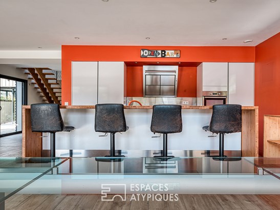 Located in the highly sought-after Saint-Marc neighborhood, just a ten-minute drive from downtown Orleans, this contemporary house built in 2012 with elegant lines offers 345 sqm of living space over three levels. Situated in a quiet second row, it benefits from an enclosed plot of 873 sqm, enhanced by a landscaped garden to the south, carefully planted with trees and punctuated by four terraces that invite you to live indoors and outdoors to the rhythm of the seasons.