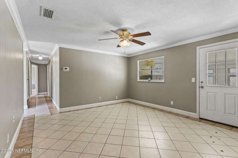 Well-maintained concrete block home located in the heart of Orange Park! This charming residence offers over 1,300 square feet of living space with stylish updates throughout. Enjoy tile flooring, crown molding, upgraded baseboards, and a beautifully remodeled bathroom. A large, sunny Florida Room overlooks the spacious fenced backyard with plenty of room for outdoor living, pets, or a future garden. Conveniently situated near shopping, dining, schools, and NAS Jacksonville, this move-in-ready home blends comfort, quality, and a great location - perfect for owner-occupants, investors, or anyone seeking easy Florida living.