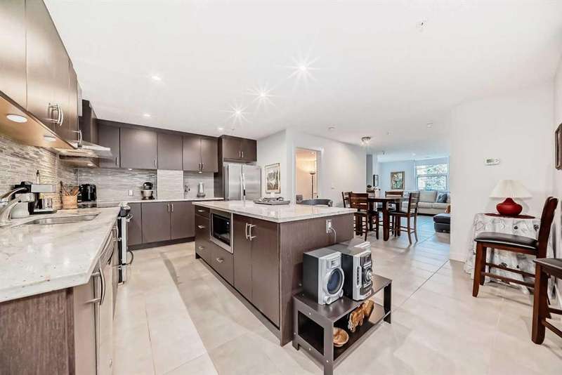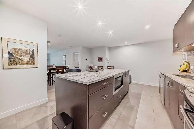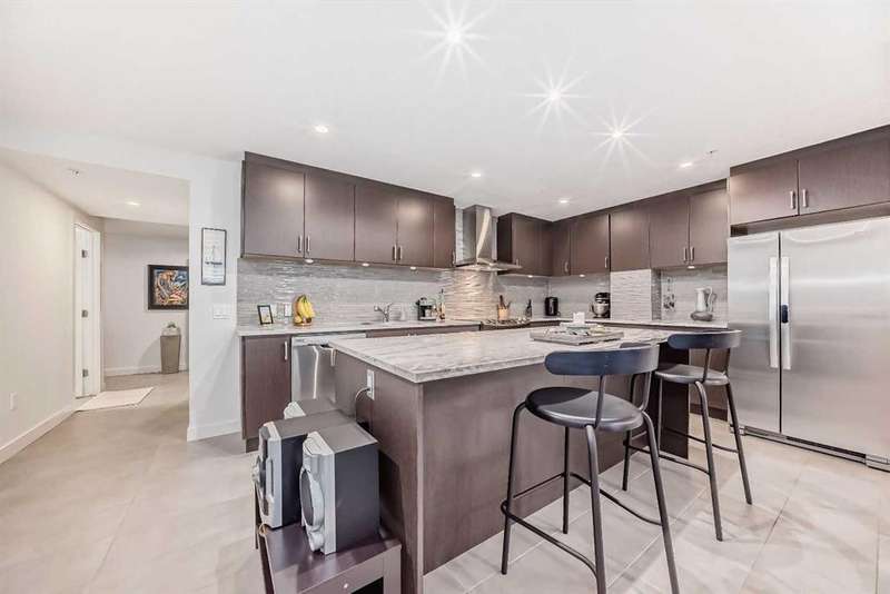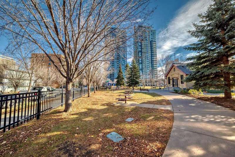 Welcome home to this Incredible opportunity to own an oversized 2 bed and 2 bath condo in the prestigious Park Building. This unit features high ceilings throughout, a gourmet kitchen with gorgeous granite countertops, modern glass tiles, rich cabinetry, stainless steel appliances and a large flat island perfect for entertaining. The dining area flows off of the kitchen area with views of the city. Cozy up in the living-room or unwind on the huge private balcony where you can enjoy a morning coffee or an evening BBQ while taking in the views of downtown Calgarys city skyline. The two bedrooms are both a generous size and are separated by the main living area allowing for a sense of privacy. The primary bedroom features a walk through closet and a stylish 4 piece ensuite. Complete with an oversized laundry-room with plenty of space to do your laundry and storage space. This unit has an added flex room and den for ample space for living with over 1240 sq ft. The building is well managed and has fantastic amenities including a Fitness center, Community Garden, Large Party-room with Patio, Guest suite, Bike storage, and a concierge. This unit includes a titled parking stall in the heated underground parkade as well as a titled storage. The location is unbeatable and only steps away from some of the finest entertainment and dining spots in the city. Close to top restaurants, parks, shopping and so many walking paths in the heart of downtown. This one is a must see to appreciate the square-footage and desirable location.