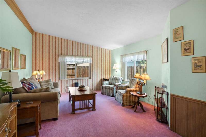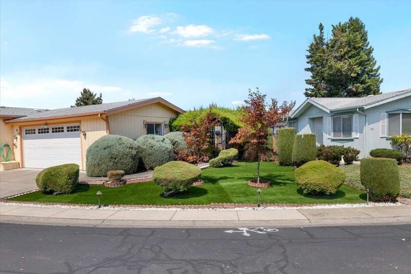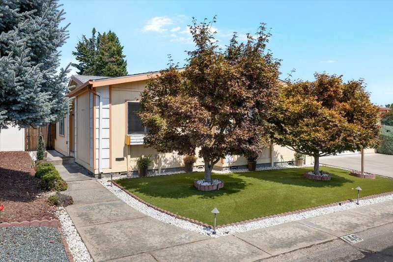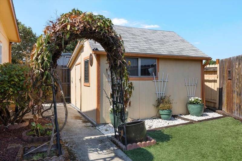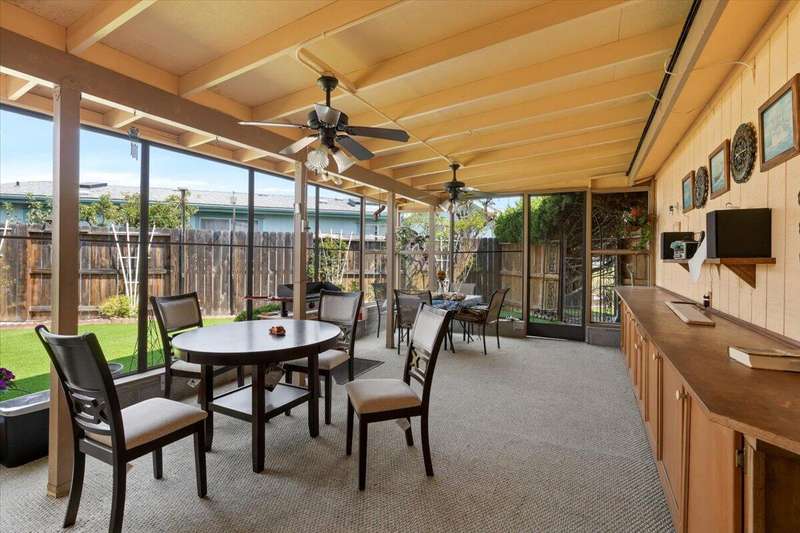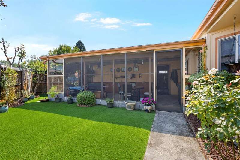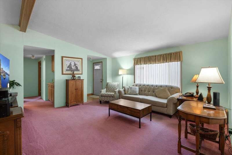 Fantastic Meadows location set on a wide lot with artificial turf front and back for true low-maintenance living. Immaculate inside and out with fresh exterior paint, updated vinyl windows, and a two-car garage with built-in cabinets, pegboard, and opener. Spacious split-bedroom floor plan offers vaulted ceilings, newer laminate flooring, and excellent storage. Kitchen features oak cabinets, hard-surface counters, solar window, and overlooks one of the nicest sunrooms in the subdivision with custom cabinetry, dual ceiling fans, and screened-in porch. Primary suite includes vaulted ceiling, walk-in closet with custom shelving, and updated bath with cultured marble and walk-in shower. Guest bath has tub-shower combo, plus inside laundry with washer, dryer, and cabinets. Heating and air replaced within the last 10 years and polybutylene plumbing removed. Extra detached custom shed included. Beautiful, move-in ready home that is cared for in every detail.