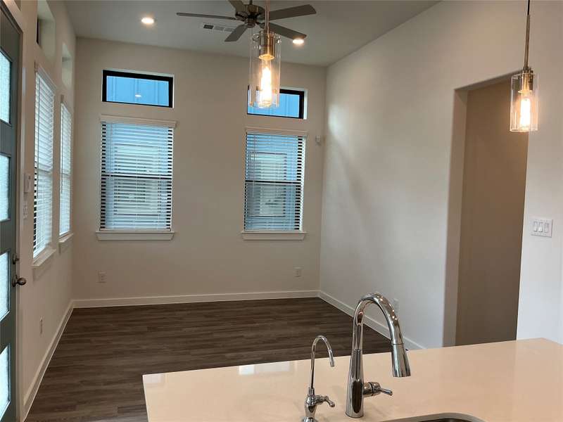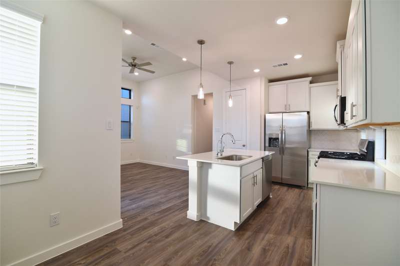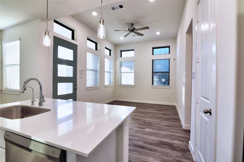 Charming cottage in the new subdivision of Indigo. Rebate of 1/2 of first month s payment at signing of lease. Conveniently located, near Grand Parkway and Westpark Tollway. One story beauty with 2 BR/2BA. Front living area w/ high ceiling which overlooks the smartly designed kitchen w/quartz counters, a 'belly up to the bar' feature w/additional seating, a generous pantry and SS appliances, including a refrigerator. Dining area sits off the kitchen area. Both BR sit at rear of house, with primary BR containing a walk-in closet and an en-suite bath. Washer and dryer included with the lease for your convenience. Enjoy sitting on your covered front porch and enjoying a morning beverage while you observe the sunrise! And, as a bonus, all of your yard maintenance is covered with your lease. The Indigo Cottages include Indigo Commons, Indigo Farm and Orchard, a dog park, and multiple other parks, including a lake w/kayak launch. Come on HOME and enjoy this thriving community of Indigo!