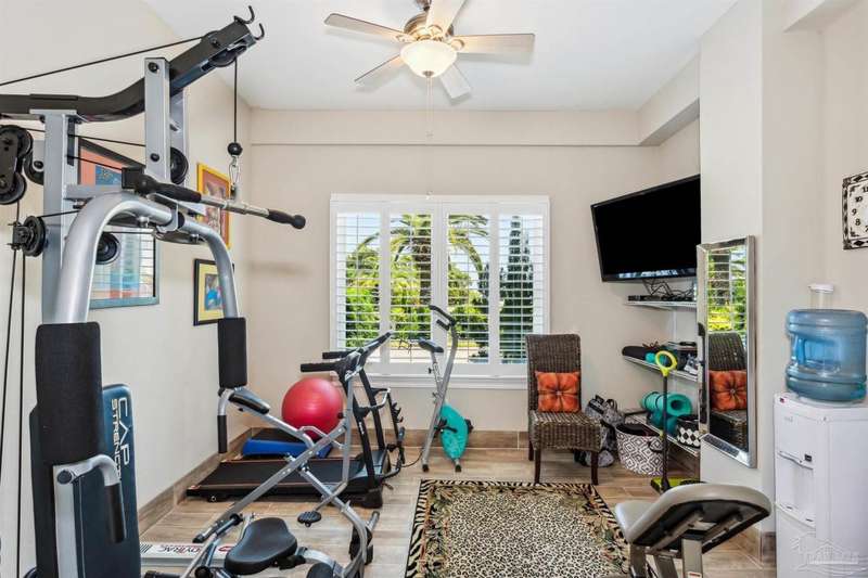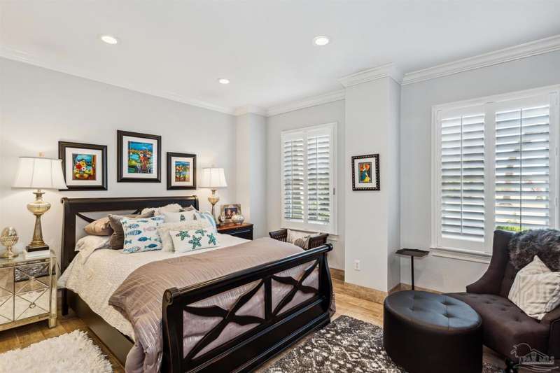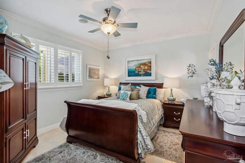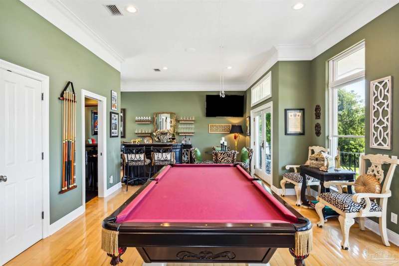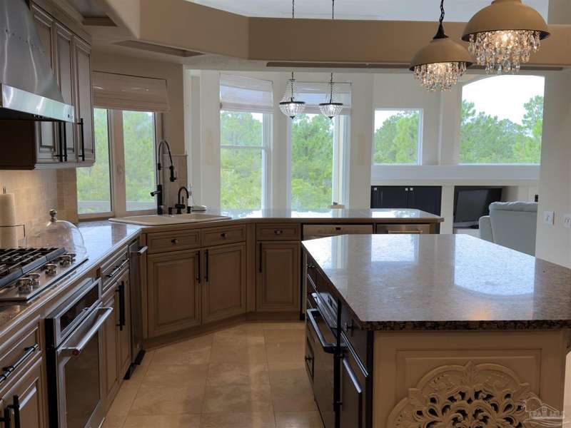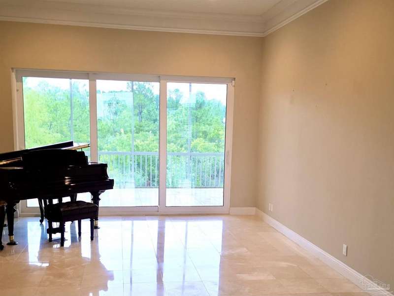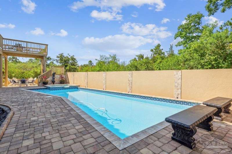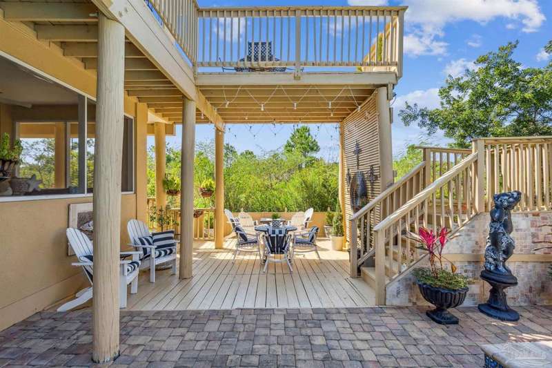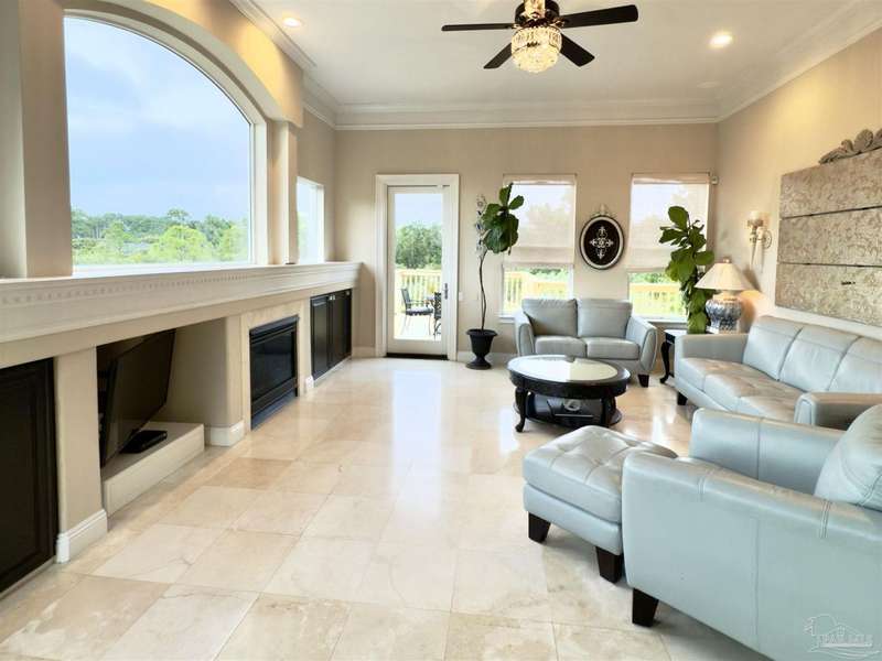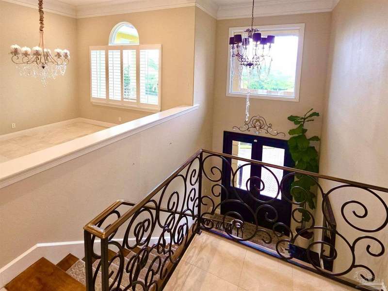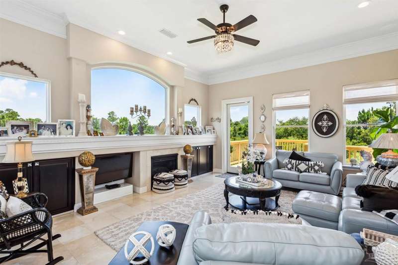 Escape to this peaceful serene atmosphere as you enter into this stunning home nestled along the 17 acres nature preserve of picturesque coastal forest and amazing views of Santa Rosa Sound and the Intercoastal Waterway. This property includes a piece of property across the street which makes for easy access down to the beach and waterfront. Many upgrades include water filtration system, a full-house generator, electric storm shutters, geo-thermal HVAC, surround sound speakers, security alarm, 2 dumb waiters, one located on the back of the home outside which serves as an elevator for people unable to use the stairs and one located inside off the garage that opens near the kitchen, great for transporting groceries! Luxurious and opulent with lavish features, such as travertine natural stone floors, decorative black iron railing encasing beautiful wood stairs, soaring ceilings, private screened balcony, gunite pool with spill-over hot tub, gourmet chef's dream kitchen featuring walk-in pantry, high-end stainless-steel appliances, gas-cooktop and top of the line refrigerator. Enjoy many rooms for entertaining and living including a large game room, office, theatre room, craft room, exercise/gym room, ensuite for guests and spacious owners ensuite with walk-in closets. The seamless transition from inside to outside makes perfect for entertaining guests off any of the well-appointed balconies or relaxing with friends and family around the sparkling pool w/ hot tub. This exceptional property located mere steps away from the Shoreline Park includes additional recreational opportunities such as paddle sports, trails for hiking, fishing, and a place to launch your own boat! Living here will not disappoint!