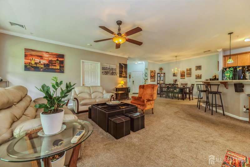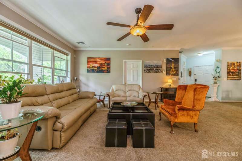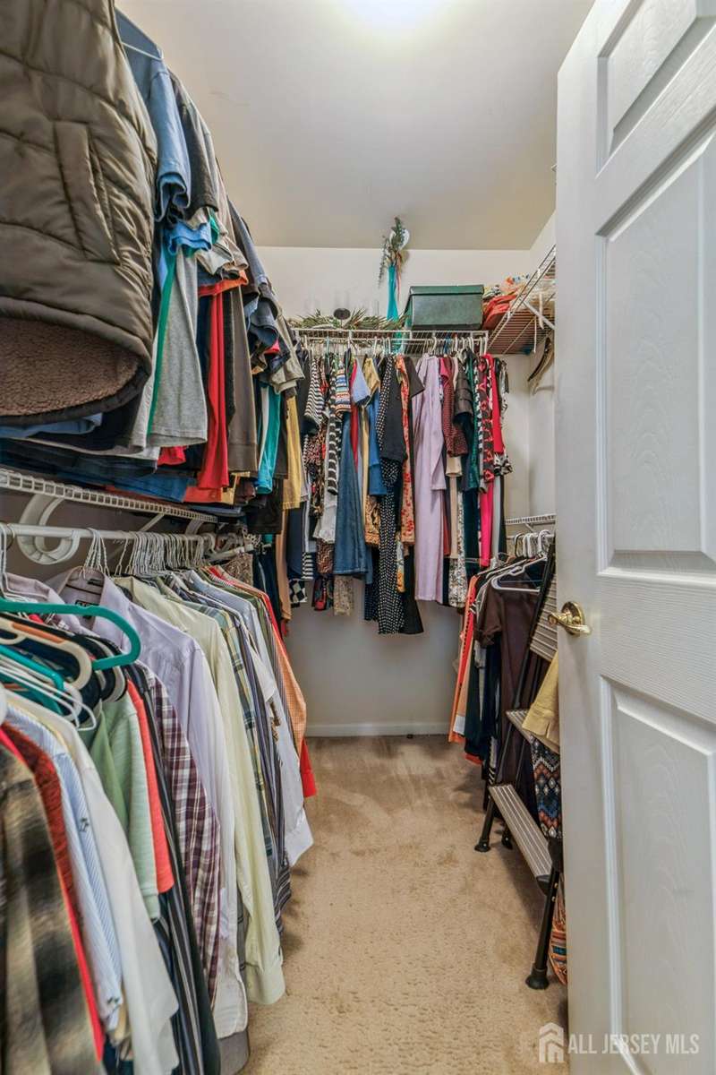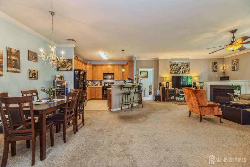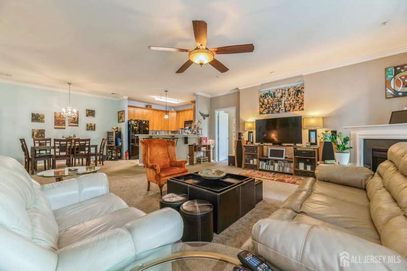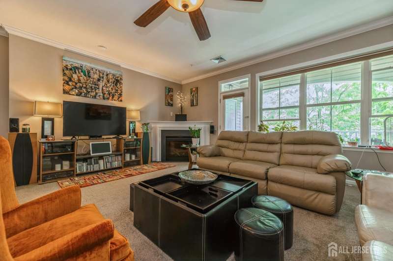 Freshly painted, move in ready, 1635 sq ft living space, largest of the 3 units available at The Preserve. It includes 2 bedrooms, 2 full baths, and open-plan living/dining room combo, plus private balcony overlooking wooded preserve! A paradise for bird-watching and entertaining. Both bedrooms feature fully shelved wics. Master is exceptionally spacious with a window-lined wall, attached bathroom equipped with stand-in shower and bathtub plus unexpected extra space between. Kitchen features copious cabinetry, counter space, appliance outlets and breakfast bar. 9 foot ceilings decked with crown molding add to the airy grandeur. An electric fireplace with mantle completes the inviting ambiance. Commuter friendly location with bus stop at complex entrance and train station minutes away by car. Adjacent Henry Hudson trail is perfect for cycling to Sandy Hook. Downtown Matawan under a mile away is full of restaurants and shopping. Complex has an electric charging location. Be in your new home for the holidays