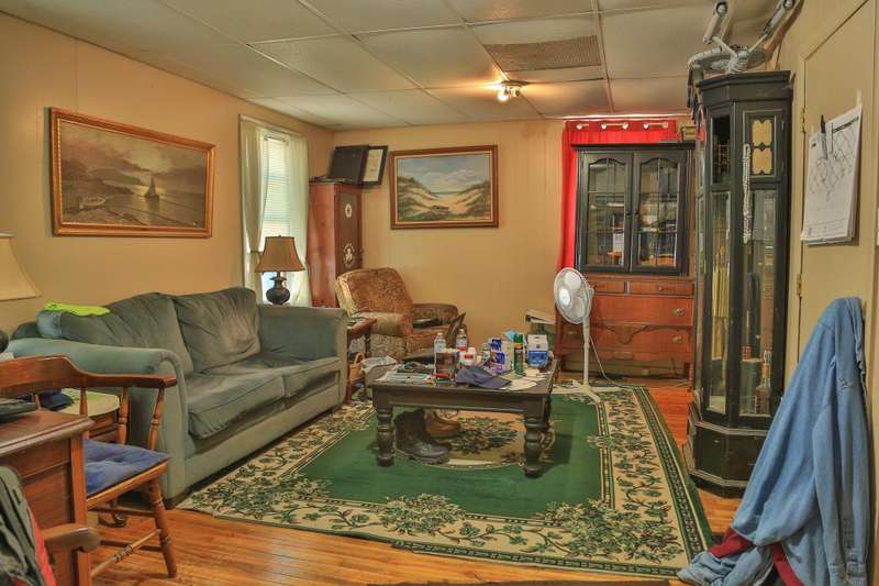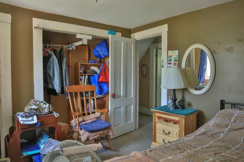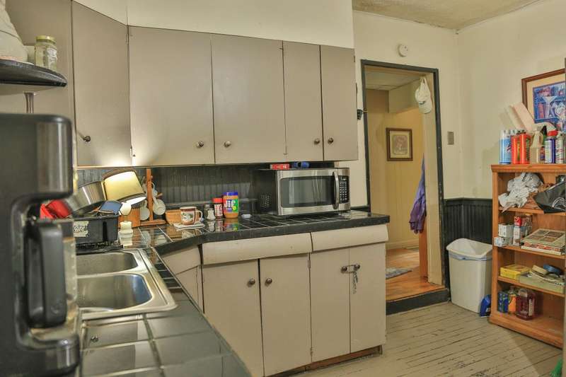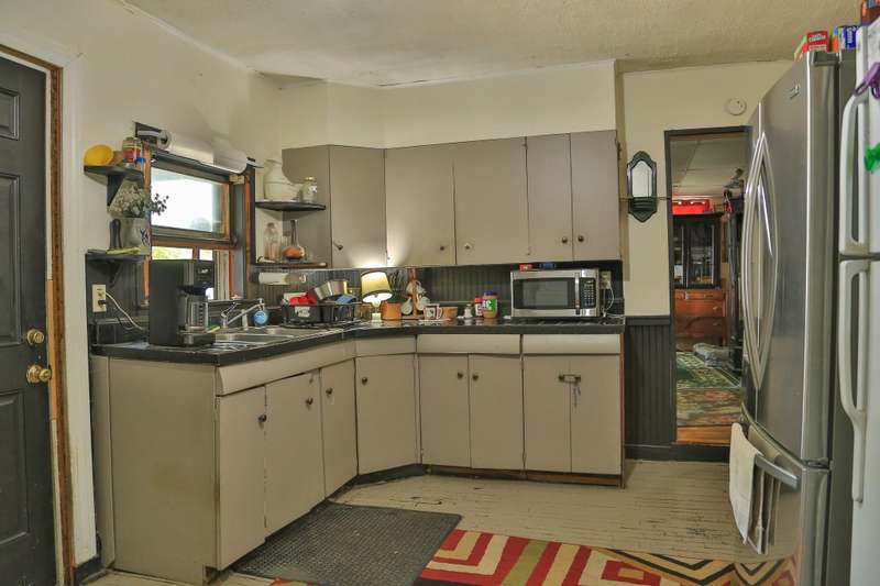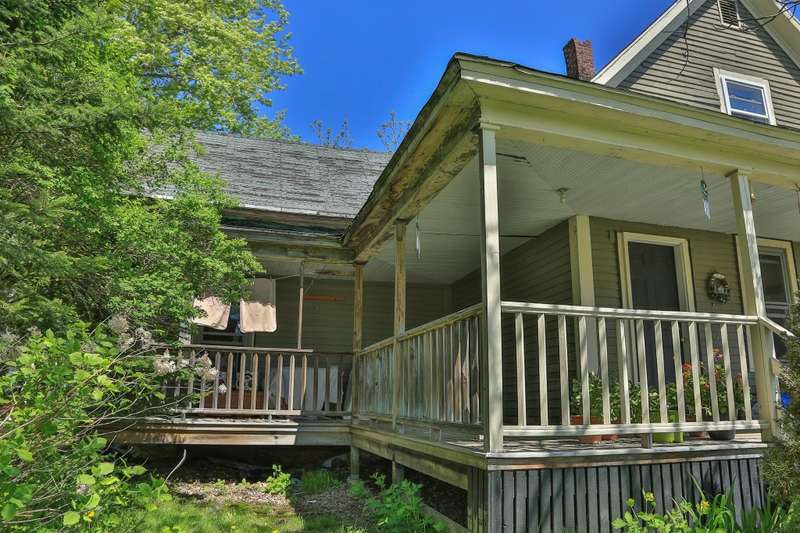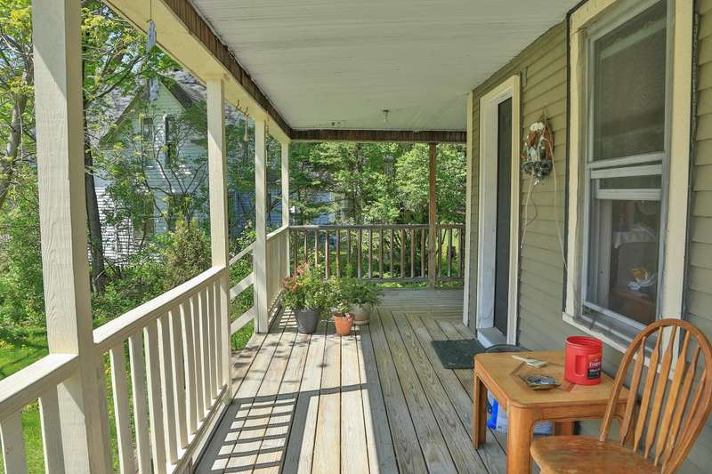 Located on a corner lot with a spacious yard and local views from the porch, this 3 bed 1 bath home is full of potential. The first floor consists of a kitchen with laundry area, living room and dining room both with wood floors. Upstairs are 3 bedrooms and the full bathroom. Outside there is a shed off the kitchen for storage, as well as a detached garage with space for a car and lawnmower. Some TLC is needed throughout the interior and exterior of the home that would likely require a rehab loan if financing.