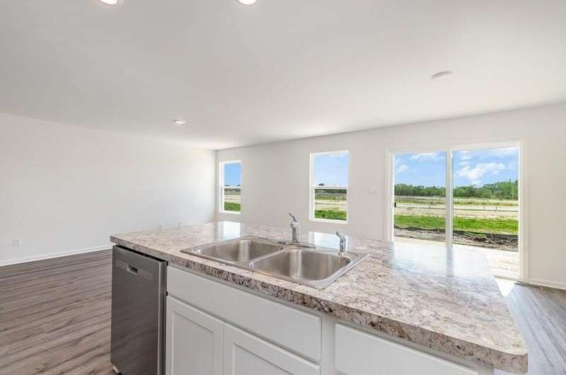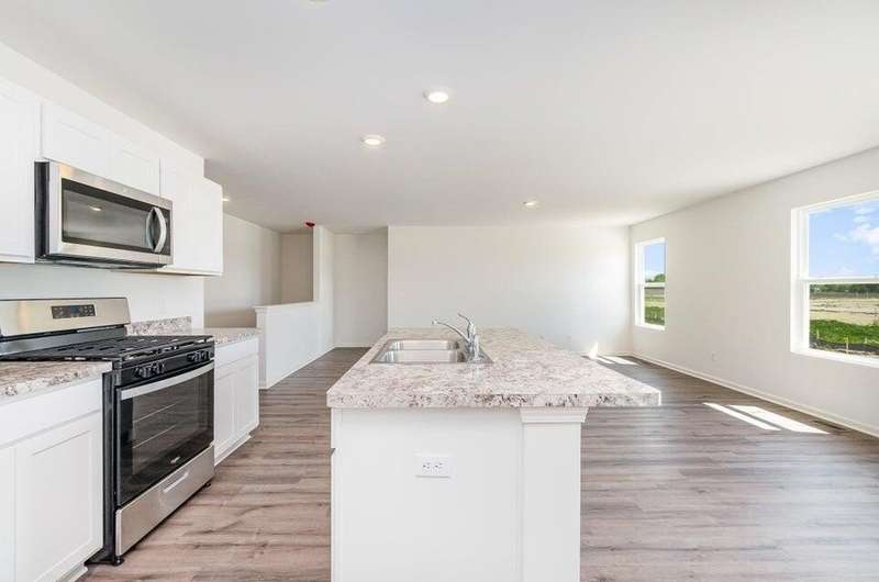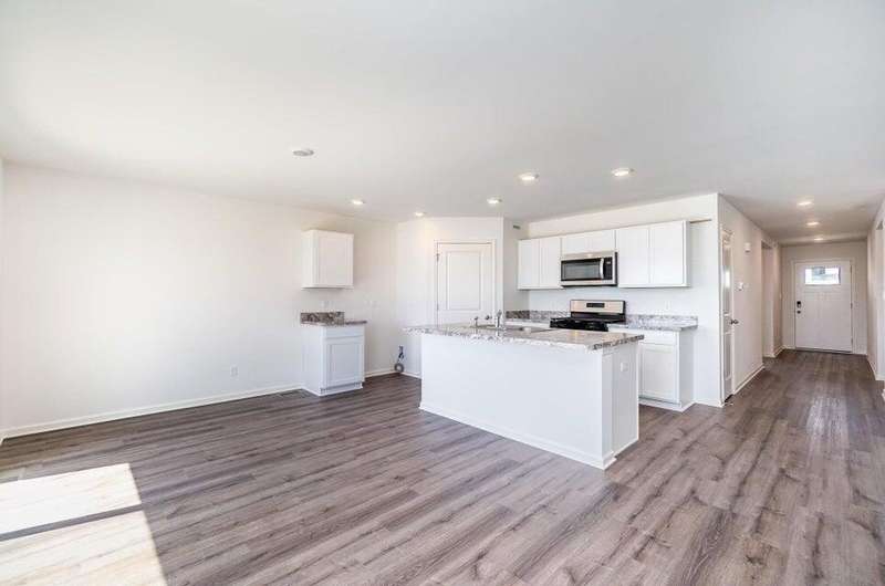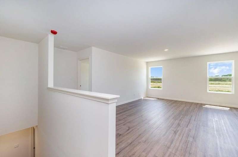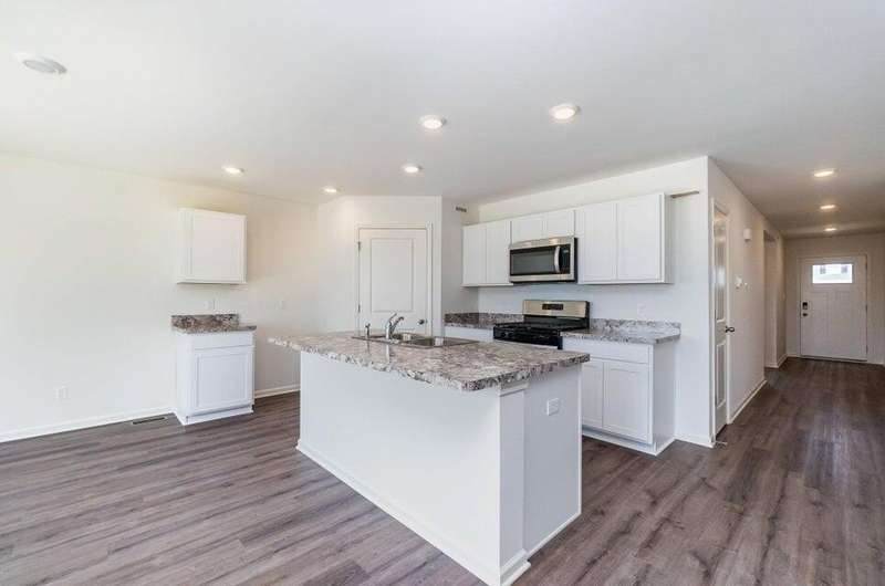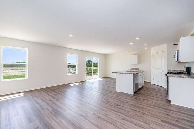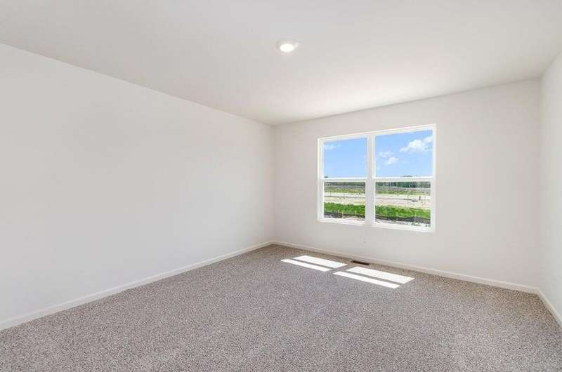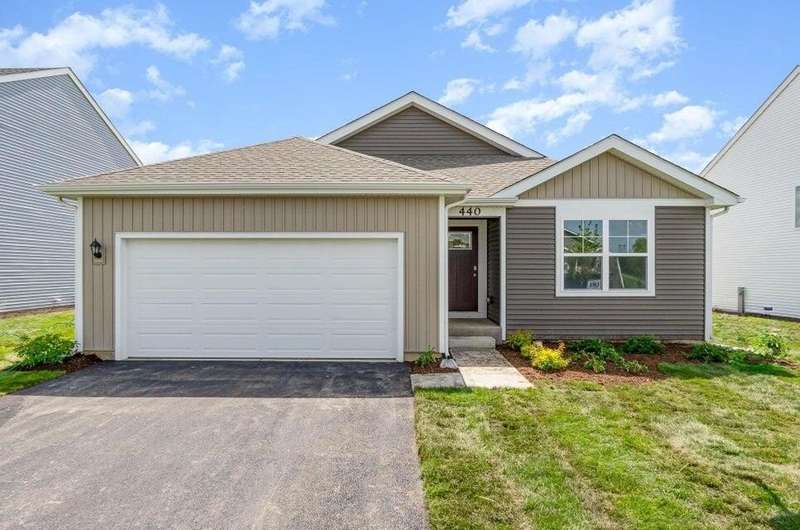 NEW CONSTRUCTION! Envision yourself in the Harmony, a beautiful new home in our Bauer Farm community in Portage IN. Homesite includes a fully sodded yard. This plan offers 1,498 square feet of living space with 3 bedrooms, 2 baths and 2-car garage. When you first enter the home, there are two full bedrooms, a full bath, and laundry room. Down the hall, the home boasts a beautiful open concept living room, dining space and kitchen. The kitchen layout includes a large island with an overhang for stools and designer white cabinetry. Additionally, the kitchen features a spacious pantry, modern stainless-steel appliances, quartz countertops, and easy-to-maintain luxury vinyl plank flooring. Enjoy your private get away with your large primary bedroom and en suite bathroom with a raised height dual sink, quartz top vanity, linen closet, luxurious walk-in closet, and walk-in shower. All homes include our America's Smart Home(r) Technology, featuring a smart video doorbell, smart Honeywell thermostat, Amazon Echo Pop, smart door lock, Deako smart light switches and more. An impressive efficiency like the ERV furnace system round out the amazing features this home has to offer! Front yard sod, back yard seed and straw. Photos are of similar home and model home. Actual home built may vary. Home available Summer 2025