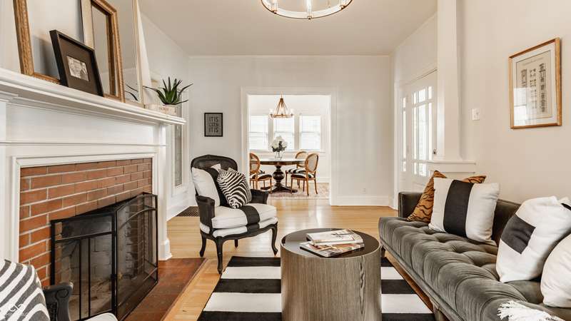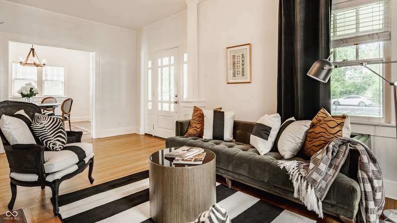 This Arts and Crafts home has been beautifully expanded and improved to include additional bedrooms, updated bathrooms, and a charming kitchen. The expansive, wide, covered front porch welcomes guests inside this lovely home. The living room boasts much of the home's original charm including hardwood floors, beveled glass window, and fireplace. A large formal dining room provides a lovely place to entertain. The renovated kitchen features stainless steel appliances, custom cabinetry, and access to the rear yard. The rear yard is fully fenced and is easily enjoyed via the large deck. The upper level is host to a true primary suite with large bedroom and ensuite bathroom complete with dual sinks, shower, and walk-in closet. An additional bedroom, full bath, and laundry room complete this second level. All this rests on a lovely block inside sought-after Meridian Kessler!