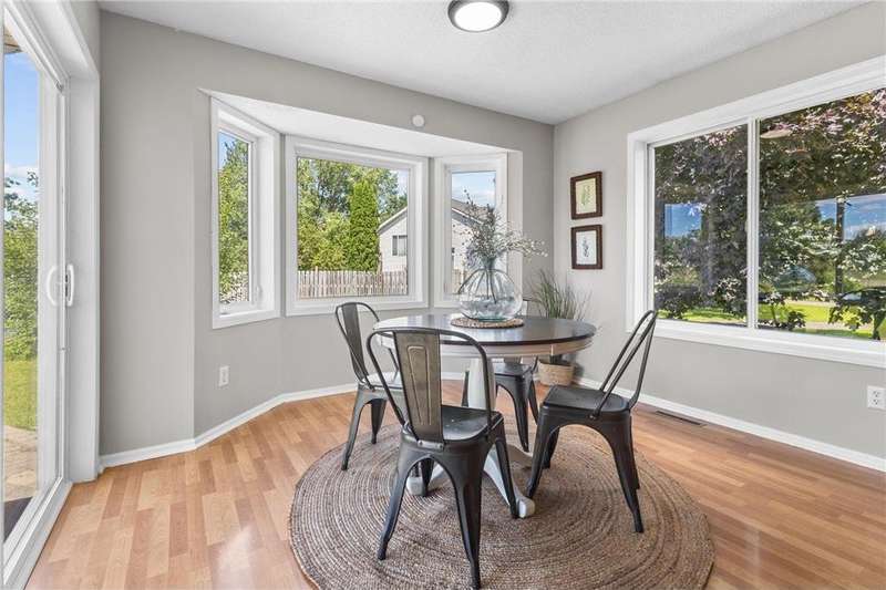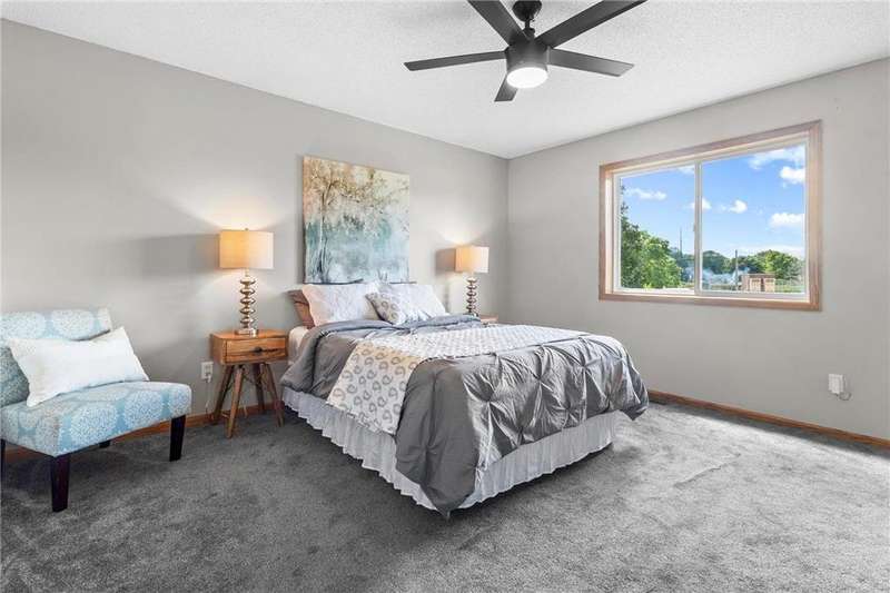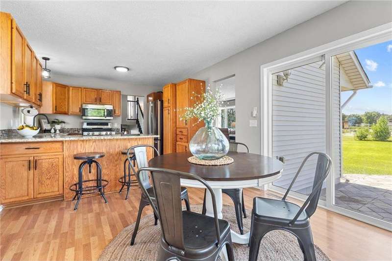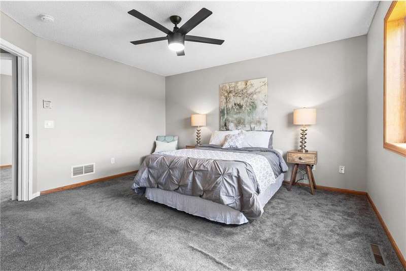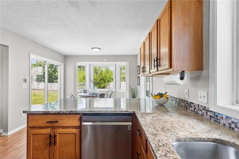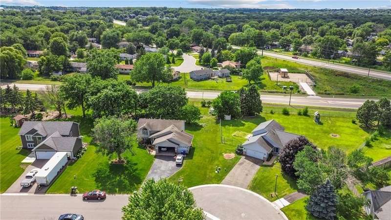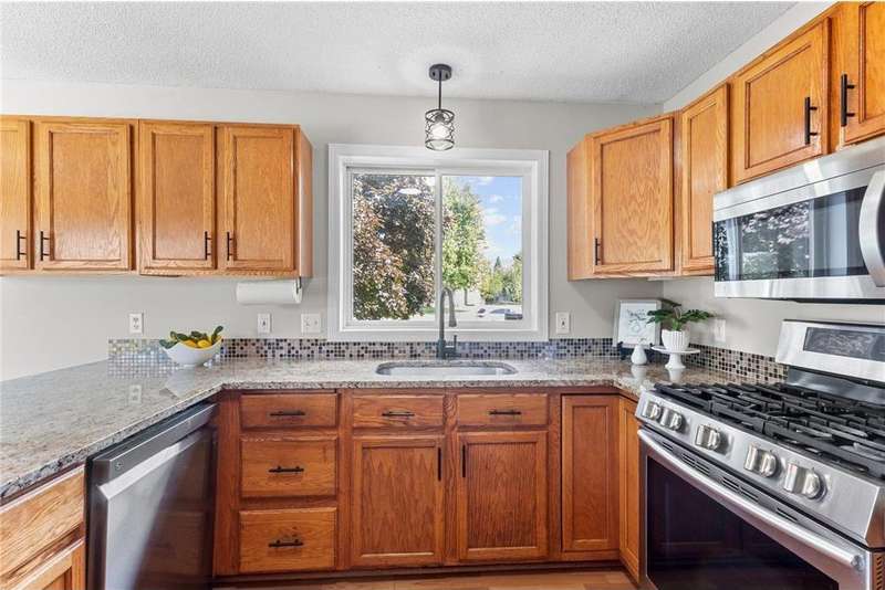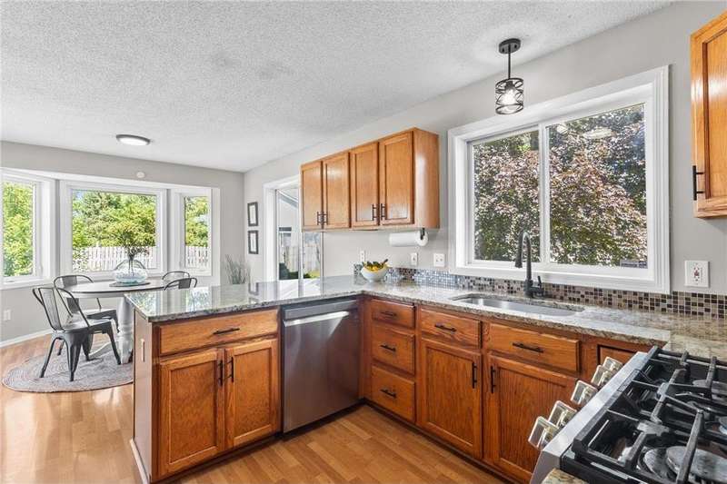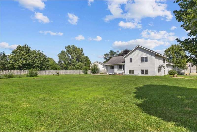 Spacious, updated, and move-in ready-this 5-bedroom, 3-bath home offers the perfect blend of comfort, style, and functionality. Fresh paint throughout brings a clean, modern feel, while newer HVAC, water heater, and egress windows add peace of mind. The bright and open kitchen features granite countertops, abundant cabinetry, and generous prep space. The eat-in dining area walks out to a large patio, perfect for outdoor entertaining. Nearly 3/4 of an acre, the fully fenced backyard offers space to roam and play, complete with a playset, firepit, and storage shed. Upstairs, the private primary suite is a true retreat with a huge walk-in closet and a newly remodeled bath featuring tiled floors, a stunning tiled shower with glass door, and stylish finishes throughout. Step down to the lower level to find a spacious light filled family room and 3 more bedrooms with an updated 3/4 bath. Located in the highly desirable 196 school district and just steps from parks and walking trails, this home checks all the boxes for space, updates, and location.