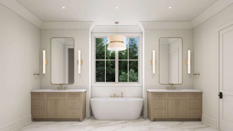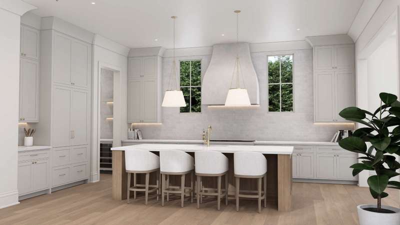 Exquisite craftsmanship and modern luxury converge in this stunning Legend Homes build, ideally situated on a prime corner lot in the sought-after Stephens Valley community. The grand 10' iron front door welcomes you into an open and elegant layout featuring 7.5" plank hardwood flooring and 11' ceilings throughout the main level. A private study with custom built-ins and French doors provides the perfect space to work or unwind. The designer kitchen showcases a custom white oak island with quartz countertops, an undermount sink, champagne bronze hardware, a 48" Thermador dual fuel range, and a matching 48" French door Thermador refrigerator. The adjacent scullery offers ample prep space, cabinetry, a 24" Sharp microwave drawer, and an Avallon beverage center, while the walk-in pantry features custom open shelving. The great room impresses with a floor-to-ceiling ArcusStone gas fireplace, and the nearby mudroom includes a built-in bench and storage. The main-level utility room features a ceiling-height backsplash and a paneled reeded-glass pocket door for a refined touch. Retreat to the luxurious main-level primary suite boasting a 20' vaulted ceiling, double vanities with quartz countertops, a freestanding soaking tub, a floor-to-ceiling tile shower, and dual walk-in closets. An additional guest suite with a full bath and walk-in closet completes the main level. Upstairs, you'll find two spacious bedrooms each with ensuite baths and walk-in closets, a large bonus room with a powder bath, and a versatile fifth bedroom with a full bath and walk-in closet--perfect for use as an additional bonus, office, playroom, or media room. Enjoy outdoor living year-round on the covered porch with its inviting gas fireplace--an ideal space for relaxing or entertaining.