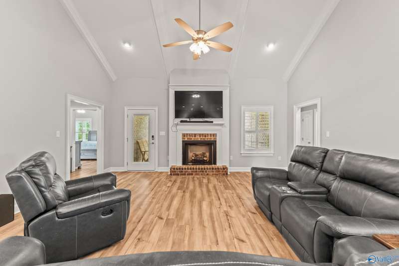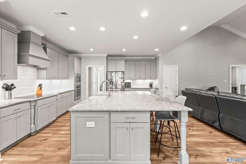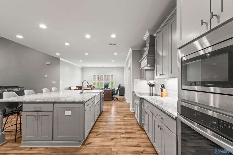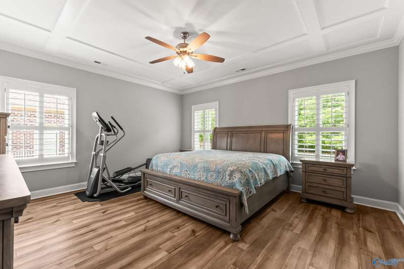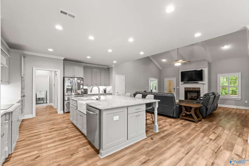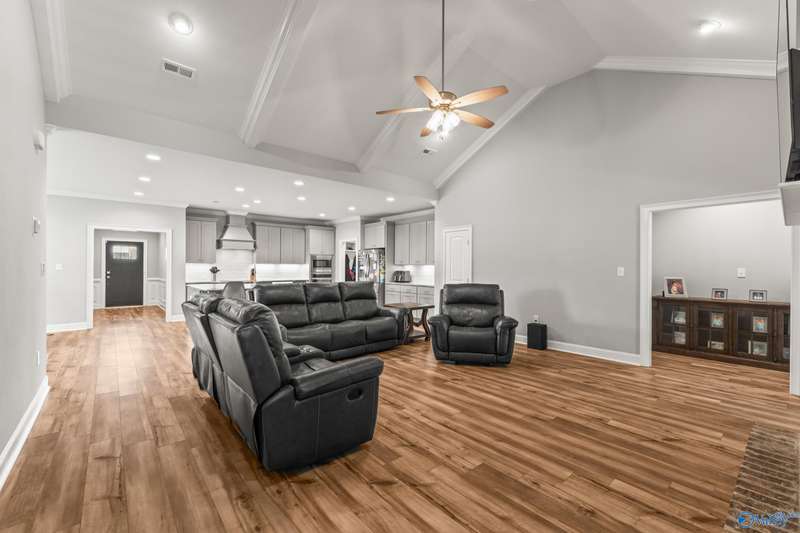 Motivated seller ! This home is not a builder spec home. This is a very customized & upgraded luxury home completed in 2023 situated on a corner lot and backing up to the woods for privacy. You will NOT find this in a new build by the same builder. Offering full LVP & tile floors, vaulted & beamed 18ft ceiling in living room, wainscotting in entrance, granite counter tops and subway tiles in kitchen with oversized eat-in counter-top, 8x6 walk-in pantry, dining room with ship-lap accent wall, Primary bedroom features coffered ceiling and extensive en-suite with upgraded tile shower and 14x 9 walk-in closet, storm doors, 3 car garage, added concrete outside, full fenced backyard ,covered patio