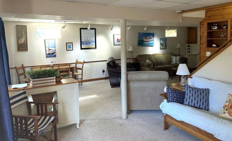 Don't miss your chance to own this spacious Cape-style home, located within walking distance from beautiful Englewood Beach, boat ramp and sailing lessons! Nestled in a very desirable, private and quiet neighborhood south of Route 28, this property boasts numerous upgrades since originally built including windows and doors, heating system, central air conditioning, and a huge mahogany wraparound deck overlooking a lush landscaped yard. Enjoy outdoor entertaining with a built-in natural gas grill and a skylit storage shed equipped with electricity that can function nicely as an outdoor bar! The outside shower has a changing area and room for two. Inside, the home features a sunlit first-floor bedroom with sliders to the deck, a cathedral-ceiling eat-in kitchen with tile floors, multiple skylights, and a wet bar/pantry area. The dining room offers a cozy fireplace, while the living room showcases warm wood floors. The smartly finished walkout basement provides even more true living space