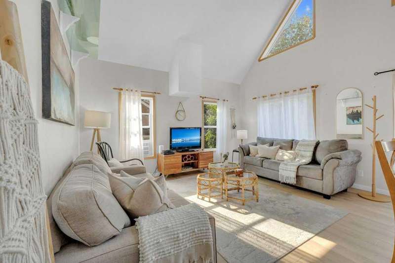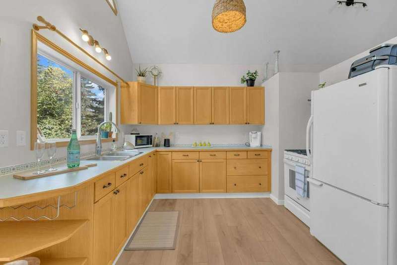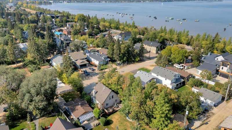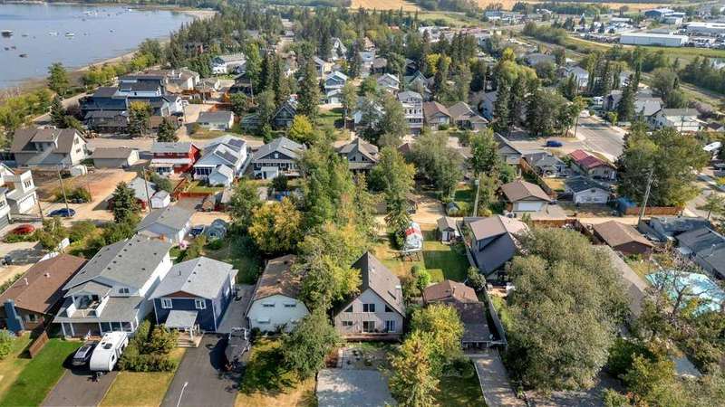 This charming 1.5 storey home is truly a rare opportunity, located just half a block from the lake in Sylvan Lake’s highly desired cottage community. Whether you’re seeking a year-round residence, a family retreat, or an investment property, this one checks all the boxes. The main floor boasts an open-concept kitchen, dining, & living area with sun-filled windows & soaring vaulted ceilings, creating a warm, inviting space to gather. The bright kitchen, features a new gas stove, plenty of counter space, & ample cabinets for storage. Also on the main level are two bedrooms, a full 4-piece bathroom, & convenient main floor laundry. Upstairs, the upper level hosts two additional spacious bedrooms & a 2-piece bathroom, making it perfect for family or guests. Practical features include a crawl space for extra storage & a new hot water tank (2023). This property is a proven income-producing Short Term Rental with an established rental history. Even better—all furniture & household items are included in the sale at no additional value. (minus a few staging pieces). It’s fully set up & ready to continue generating income from day one. The backyard is an entertainer’s dream with a large deck, ambient string lighting, a cozy firepit—the perfect place to gather with friends & family after a day at the beach! With the shoreline, beach, & walking paths just steps away, this property offers not only the lake lifestyle you’ve been waiting for but also an excellent investment opportunity.