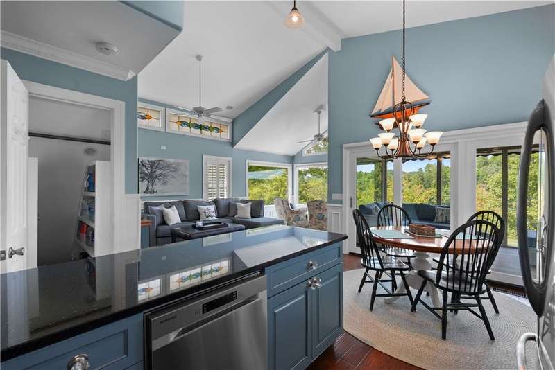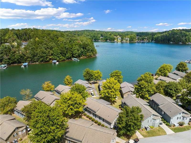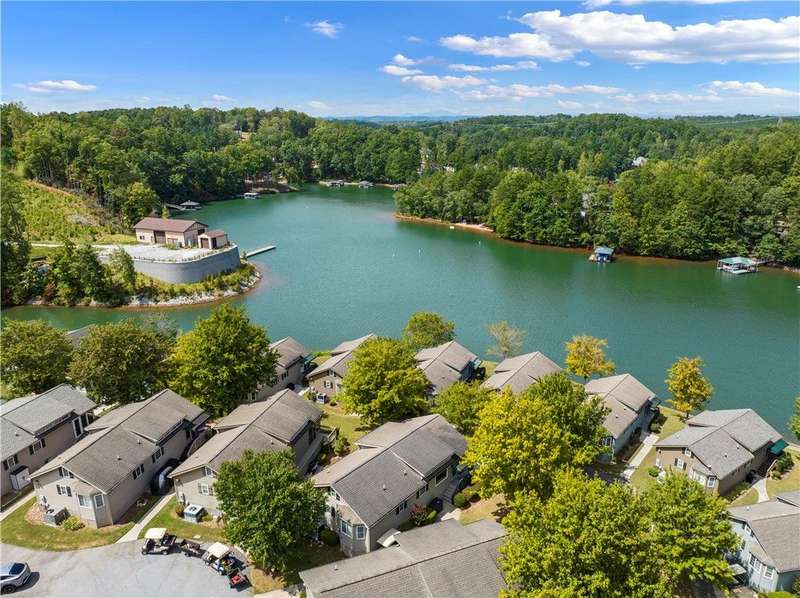 ASK ABOUT THE THIRTY NEW BOATSLIPS! Enjoy a true get-away experience at this quaint furnished lakeview cottage. This unique, convenient location provides an elevated setting on Lake Keowee with a level, short walk to the private parking. Take in the view from large windows that provide a front row seat to 180-degree water views during all four seasons. An open floor plan makes entertaining a breeze with combined kitchen, living and dining. What makes this cottage even more special is that it features several upgrades over the standard model. It was custom built as a primary residence with the details in mind. Features include hardwood floors and plantation shutters throughout the living area with accent wainscoting. Both baths have a spa-like marble shower with frameless glass door, custom decorative vanity cabinet, granite counters and ceramic tile floor. The kitchen boasts stainless steel appliances, granite countertops AND a nice size pantry. The staircase leads to the loft area, which makes a great space for additional sleeping quarters or climate controlled storage. Another unique and exciting feature to this specific cottage is that it is one of few to have a large electric awning covering a lovely paver patio. Find your designated parking just a short and level walk outside of the front door. There is a regime fee that includes landscaping maintenance, private gated community, sewer, trash service, pool, clubhouse, walking trails, fitness center, lighting and more. A modified tax structure adds to the savings of this remarkable Lake Keowee cottage. This unit offers full-time living capability, and comes furnished, to start living lake life today!!!HVAC replaced June 2023. No rentals less than 12-months permitted. Gate is monitored with no public access. Entry requires agent representation.