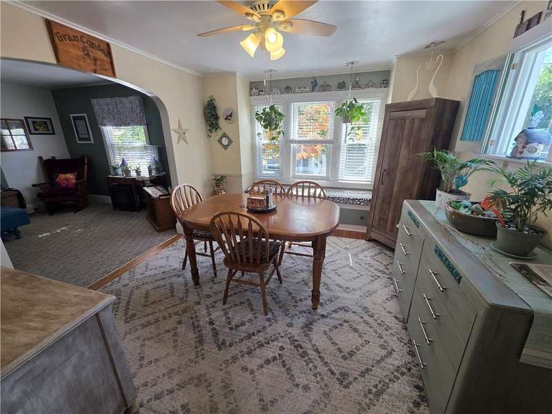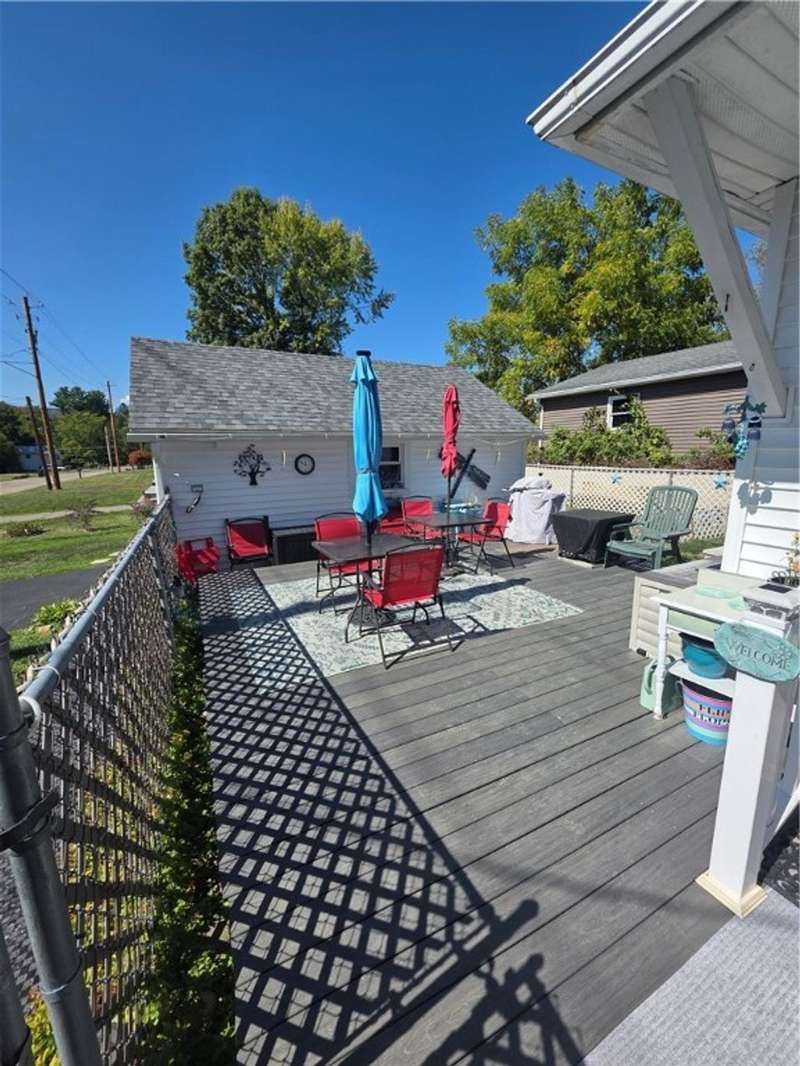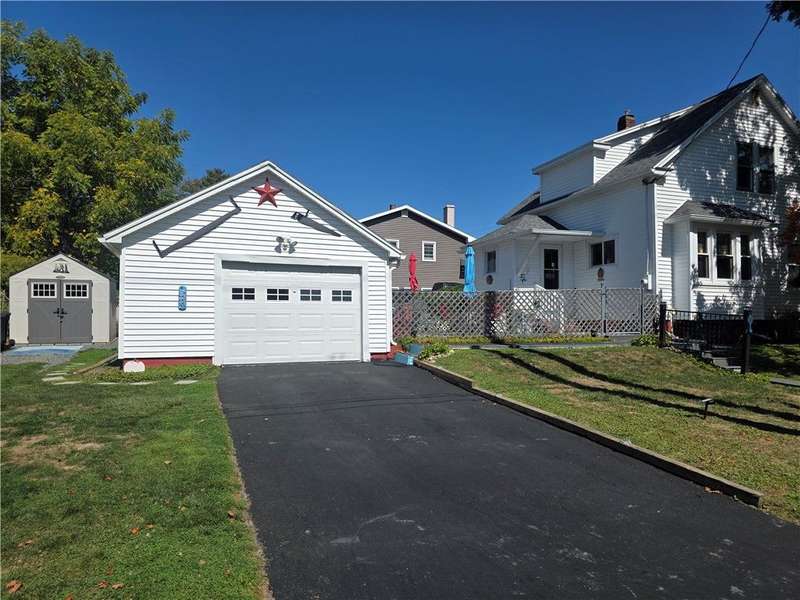 Welcome to this immaculately maintained 2-bedroom, 1-bathroom home with a finished 11x11 bonus room in the basement. Thoughtful updates include a new roof, central air, and furnace within the last three years, as well as a new shed for additional storage. A detached 1-car garage provides convenience, while the large composite deck, composite walkways, and newly built front porch create inviting outdoor spaces. Inside, hardwood floors are found throughout under the existing carpeting, offering timeless character and flexibility. This home blends comfort, functionality, and quality updates, making it move-in ready.