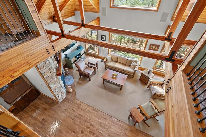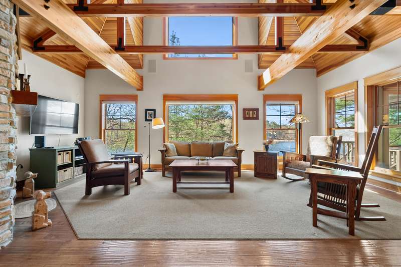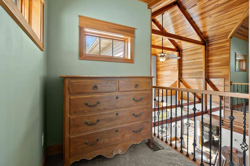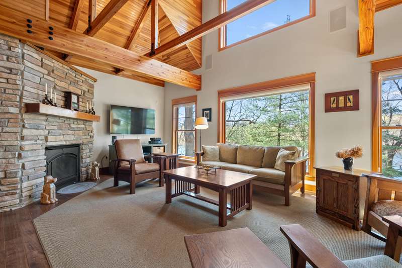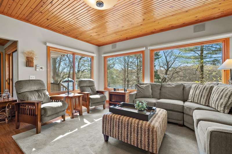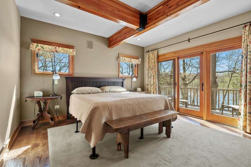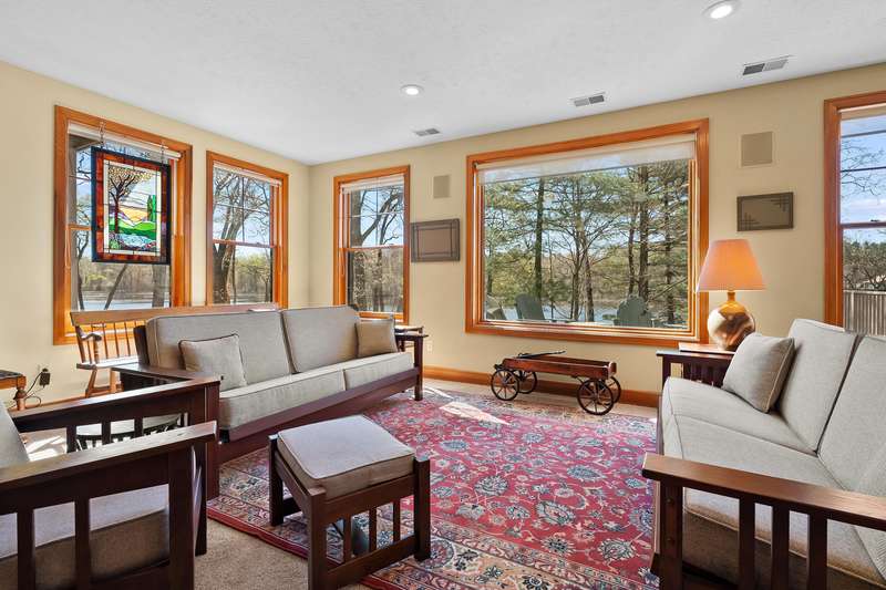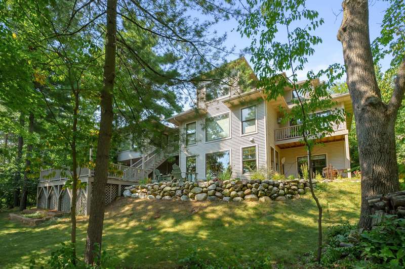 This PRIVATE WATERFRONT home is not to be missed! Custom construction and high-end materials are evident everywhere in this impeccably maintained home on quiet and serene Cranes Pond. 133 feet of frontage, mature trees and active wildlife, while offering maintenance free living! Truly a retreat, this former Parade of Homes star offers beautiful architectural details, roomy, private bedrooms with attached baths, and several light-filled gathering spaces. Large main floor primary suite with private deck, main floor laundry, updated kitchen, eating bars and adjacent sunroom w/ fireplace and water views! Spacious 2nd floor layout overlooks the living room with vaulted ceilings, stone fireplace and scraped wood floors. Bright Walkout basement has kitchenette, 5th bedroom,(more...) and opens to the waterfront deck and patio space. Updated mechanicals, whole-house generator, invisible fence and covered front porch. Private Waterfront for under $800k close to Gull Lake & 5 Golf Courses! This is a house to move for; A home, setting and location like this one is very special!
