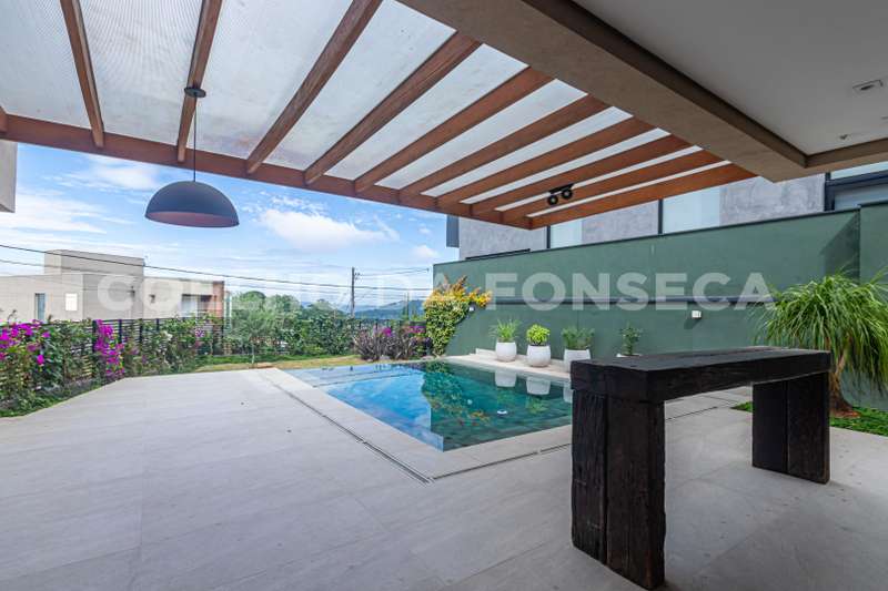 Casa super bonita e gostosa. Acabamentos modernos e de boa qualidade. Caixilhos em alumínio marrom, piso de madeira em toda a área íntima da casa, porcelanato de excelente aderência na área gourmet, energia solar para aquecimento de água e sistema fotovoltaico em funcionamento. Vista linda! O empreendimento ainda conta com campo de futebol e quadra poliesportiva, quadra de tênis, quadra de beach tenis, parquinho e mirante.