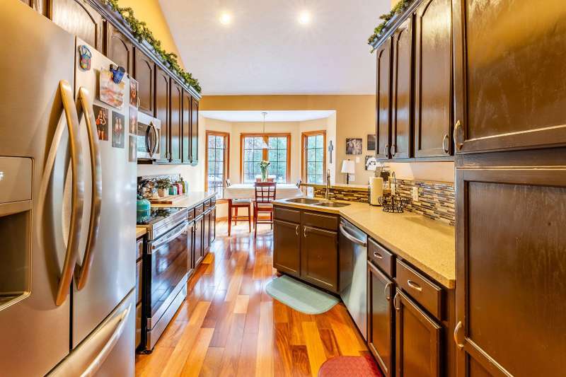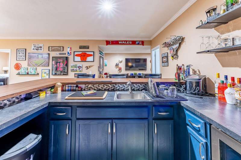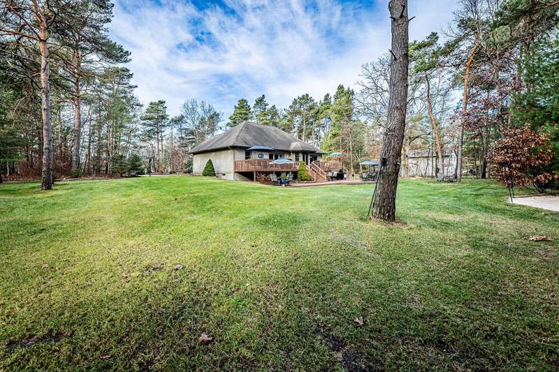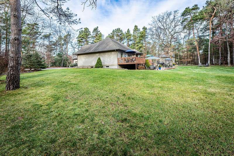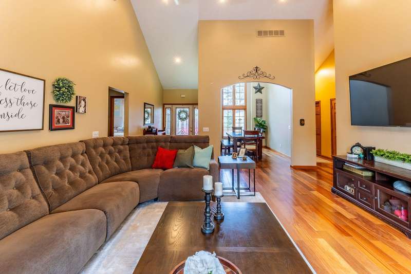 Welcome home to 7016 Hyde Park! As you enter the front door of this lovely, well built 4 bedroom, 3 bathroom executive ranch home, you'll appreciate the soaring 17' ceilings, gorgeous Brazilian teak wood floors and stunning kitchen with beautiful solid surface countertops. There is so much room in this home for entertaining, inside and out! You will be thrilled to find that the main floor laundry is in the large master suite! The main level is made complete with a formal dining room, two additional bedrooms as well as another full bathroom. Downstairs you'll find a large family room as well as rec area, complete with an incredible bar area, another full bathroom and bedroom. There is an additional non-conforming bedroom in the basement as well as walkout access to the yard. New furnace and a/c as well as new septic in 2024.