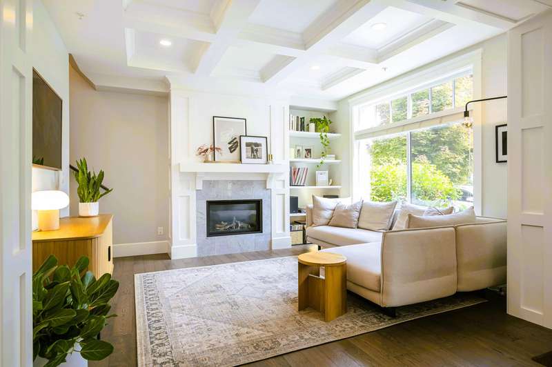 McBride Station - where charm meets everyday comfort. This thoughtfully designed 2-storey with basement features bright great room with coffered ceilings & large windows that flood the space with natural light. At the heart of the home, the kitchen shines with a generous island, quartz counters, gas stove, French doors opening to a private patio - a welcoming space for relaxation. Upstairs offers 3 spacious bedrooms, incl primary bedroom with a tranquil ensuite, plus convenient laundry. Stay cool with air conditioning! Lower level provides an expansive recreation area with wet bar for family fun or movie nights, a den for a home office or study, plenty of storage. Just steps from coffee shops, post office, Fraser River trails, & the welcoming community spirit Fort Langley is known for.