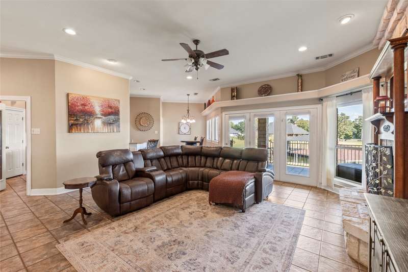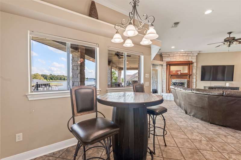 Waterfront home with approximately 150 feet of shoreline, private gated entry, and full perimeter fencing on a .59-acre lot in The Enclavea quiet, gated community near The Pinnacle Country Club. This property offers an elevated setting with wide water views and protection from rough open water, blending expansive views with peaceful surroundings. The boathouse includes one boat slip, two PWC lifts, and a covered sitting area. A 2024 lake-pump sprinkler system keeps the yard green year-round, and theres space to add a pool while retaining a large grassy area for outdoor enjoyment. The waterside patio is ideal for entertaining, complete with a wood-burning fireplace and bar-top pass-through window from the kitchen for serving drinks or snacks. Inside, the living area offers a wood-burning fireplace, wet bar with wine fridge, and connects to a formal dining room. The kitchen features wood cabinetry, granite countertops, center island, double ovens, trash compactor, and pantry, plus a bright breakfast area overlooking the lake. The split-bedroom layout provides privacy, with an expansive primary suite showcasing lake views, sitting area, and direct patio access. The ensuite bath includes a walk-in shower with dual heads, soaking tub, dual vanities, and a large walk-in closet with built-ins and access to the utility room. On the opposite side are three spacious guest bedrooms, each with walk-in closets. One guest suite has patio access and water views, plus an ensuite bath with tub shower combo and steam function. Concrete walkways, mature landscaping, and ample guest parking. Exterior highlights include a stone and brick faade, new 2025 roof, 2-car garage, and climate-controlled golf cart garage with insulated walls and HVAC, currently used as a playroom or flexible bonus space. A storage shed provides space for lawn equipment and lake gear. Located near The Pinnacle Country Club, where golf and social memberships are available for expanded recreation and dining.