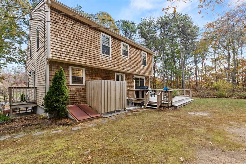 Welcome home to charming Cape Cod living! Nestled on a peaceful cul-de-sac, this 3-bedroom, 2-bathroom gem is your perfect Massachusetts retreat! The main level offers a wonderful flow, starting with a cozy living room that leads directly into the nicely updated kitchen. Here, you'll find granite countertops, stainless steel appliances, and a breakfast bar, all overlooking the sunlit dining room with slider leading out to your expanded deck to just sit back, relax and enjoy nature. A spacious family room and a full bath complete the first floor. Upstairs, discover three comfortable bedrooms, including a spacious primary bedroom illuminated by skylights. A second full bathroom is conveniently located off the hallway. The backyard is an outdoor haven, featuring a deck, firepit, storage shed, and an outdoor shower - perfect after a day at the beach! You're just minutes from Nauset Light Beach, Rail Trail and countless local amenities. Don't miss this slice of coastal New England paradise!