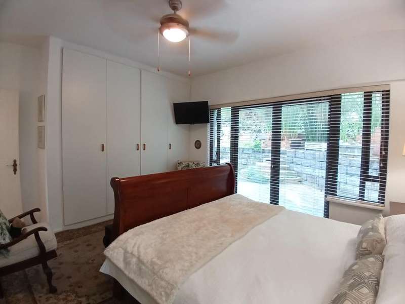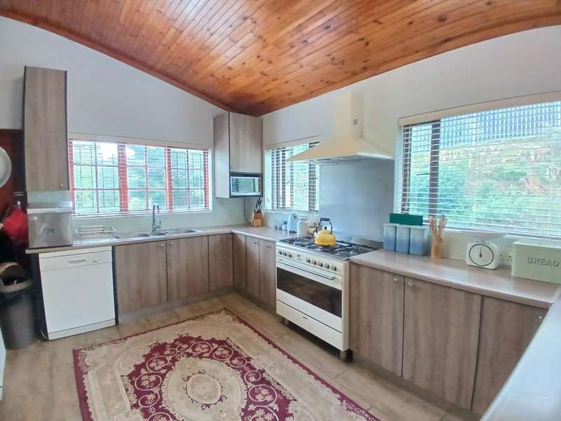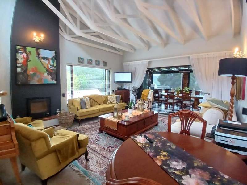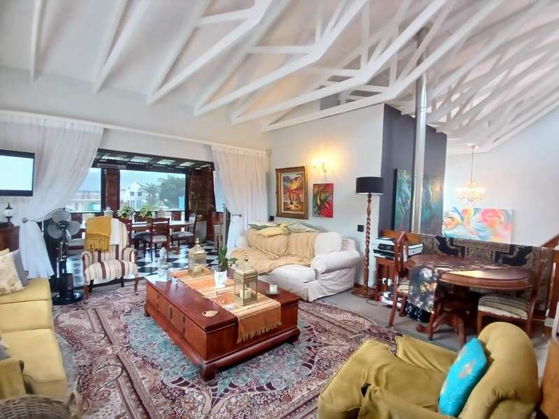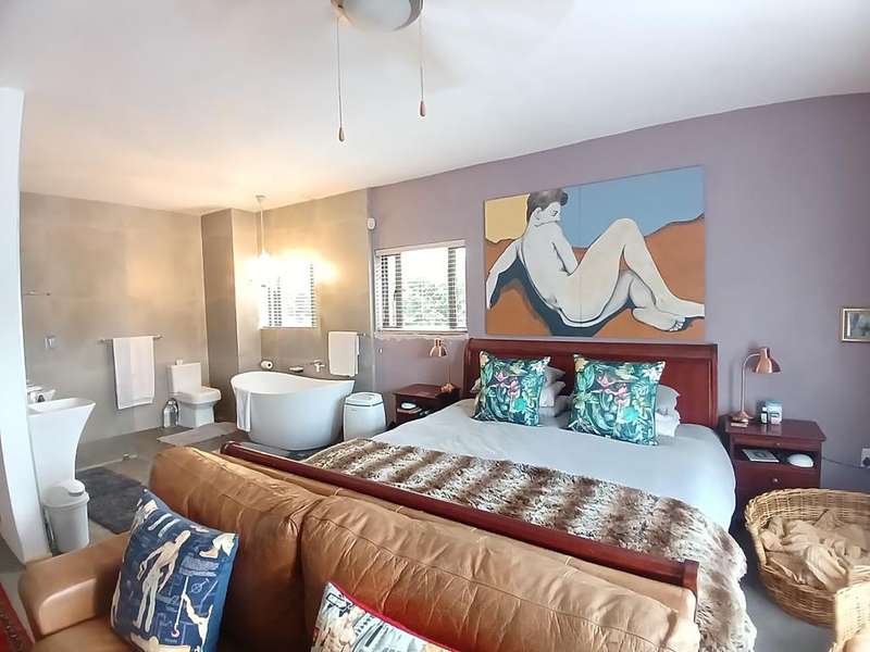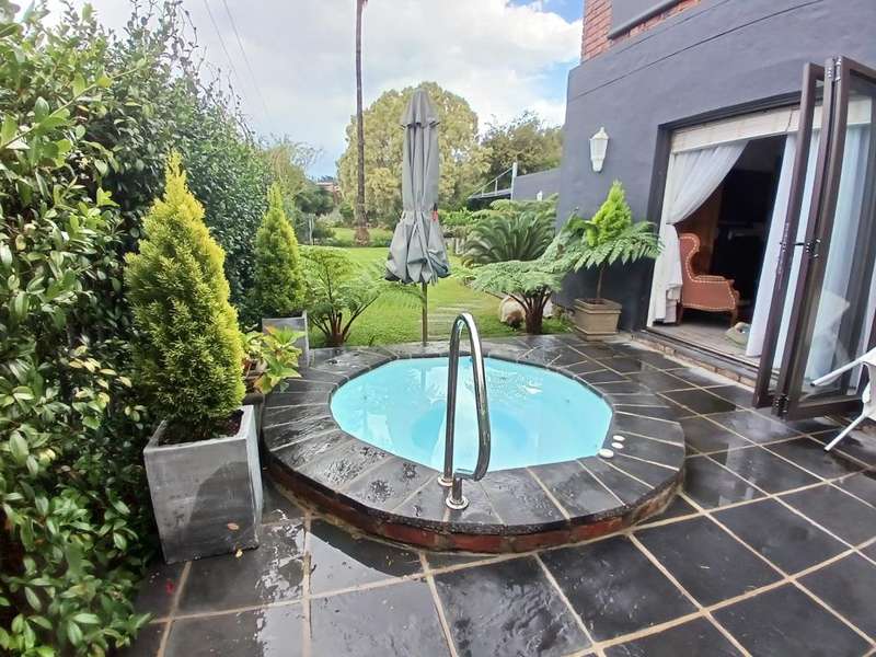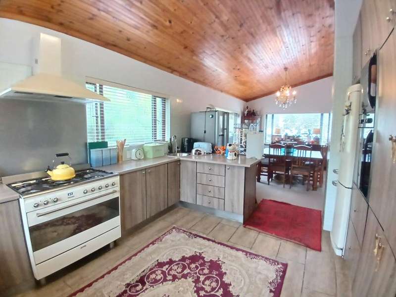 This property is a must-see with the possibility to turn this into a B&B or your permanent home. The home offers three bedrooms with en suite bathrooms downstairs. The main bedroom has a full bathroom, dressing area, and doors leading out to the splash pool. The other two bedrooms have en suite bathrooms both with showers, toilets, and basin. The cozy sitting room downstairs has a fireplace to warm those cold evenings. As you take the comfortable wooden stairs upstairs you have your large living area and guest toilet. The stoop is enclosed and offers you an additional room with a braai area. Towards the back, you have a comfortable-sized kitchen. The property is fully enclosed and pets are welcome. Double garage with shaded carport for additional parking. There is enough space on the property for your boat as well. It is a must-visit, to appreciate this unique home. Building plan approved for a fourth bedroom.