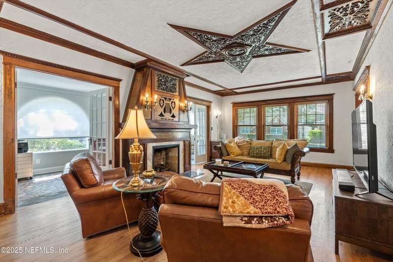 The San Marco Castle! This classic 1929 Mediterranean Revival home has some of the most remarkable woodwork seen in the area. The home has been restored and modernized, with updated plumbing and electrical systems, a super efficient HVAC, a 4th bedroom suite option (depending on use of additional space as Family Room or an in-law suite), The Living Room and Dining Room are gorgeous, with a breath-taking mantle around the fireplace in the Living Room (reclaimed from an 1800's riverfront home), and tiger-striped oak paneled walls in the Dining Room. The star on the living room ceiling is purportedly from the original owner of the house, a retired 1-Star WWI General! The home has been nicely upgraded with newer baths and appliances, and a serene side patio with a low-maintenance yard. Best of all, this home has one of Jacksonville's highest walkability scores, with it's proximity to San Marco restaurants, parks, schools, shops, and the St. Johns River