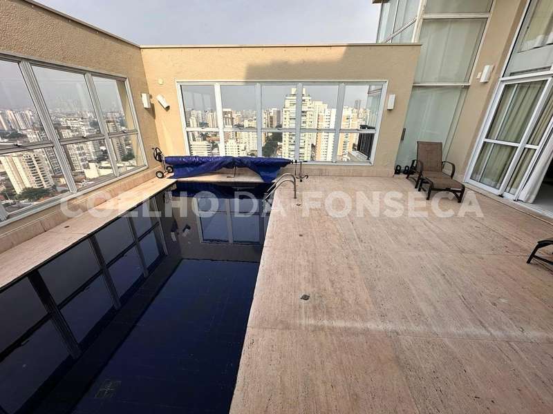 Cobertura no bairro Vila Romana com 316m² área privativa/útil, 4 dormitório(s), 4 suíte(s), 6 vaga(s), 4 banheiro(s), piscina, churrasqueira, terraço, depósito, duplex, ar condicionado, dep. de empregados, pé direito duplo.