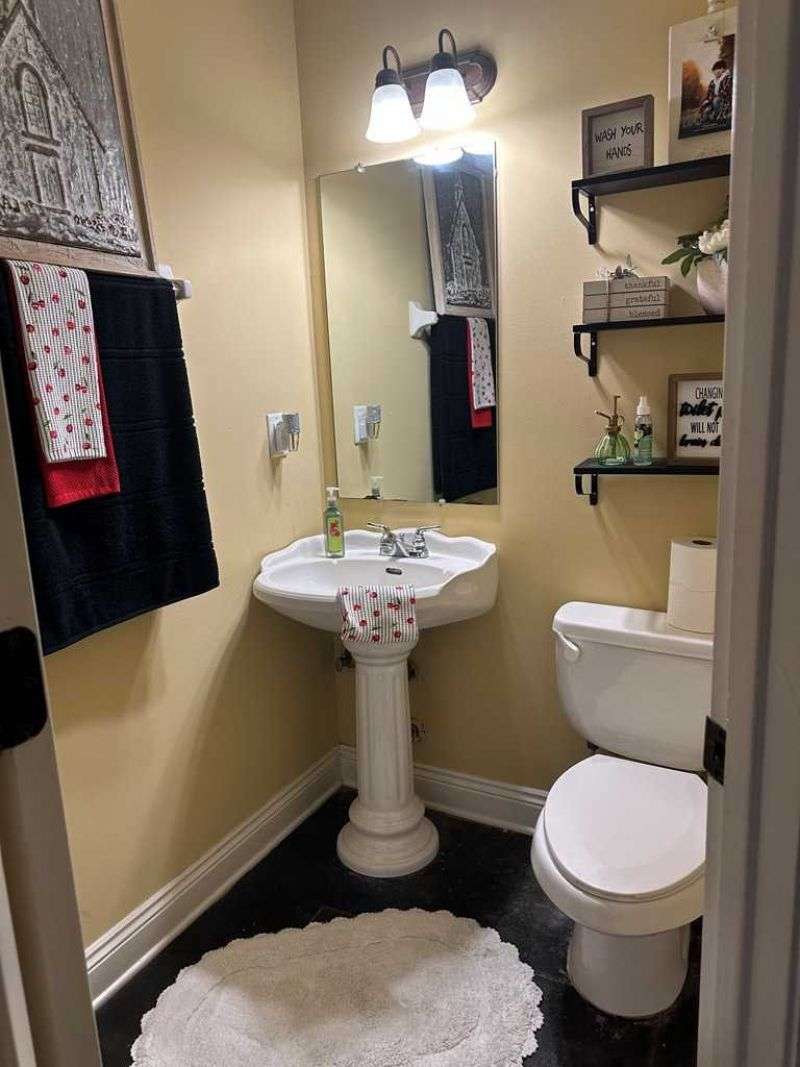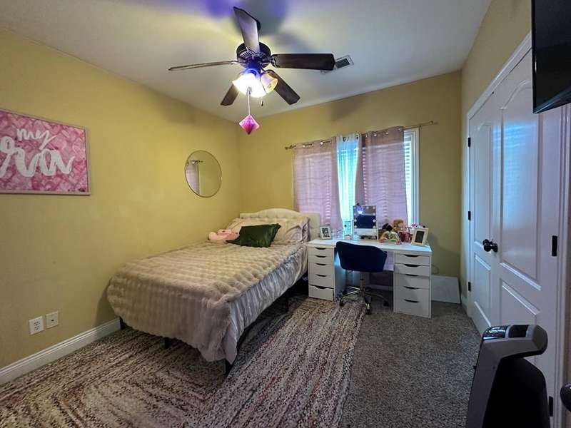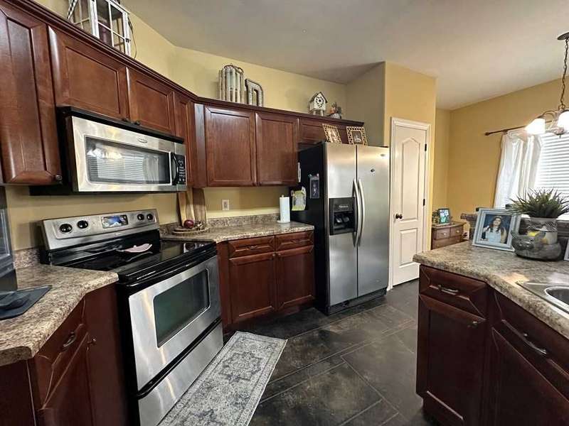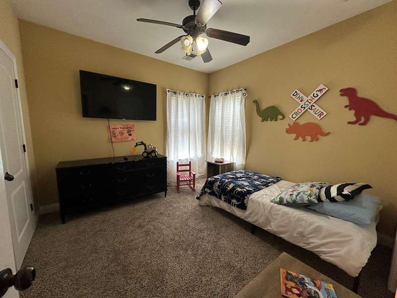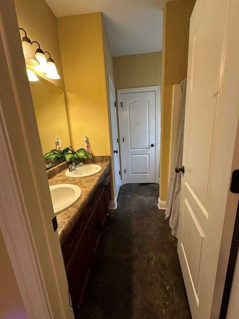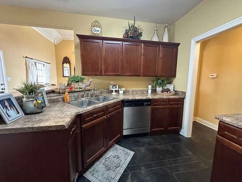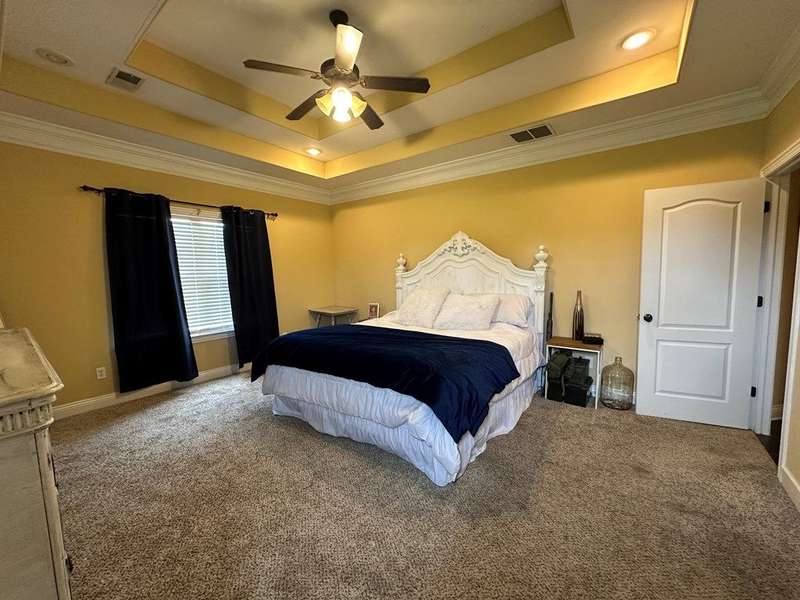 This home boasts a stunning layout highlighting grand entrance double doors that lead into a spacious area with 14-foot ceilings, seamlessly connecting the living and dining spaces while keeping them visually distinct. The well-appointed kitchen features an eat-in area and a bar, ideal for casual dining. Stained concrete floors add a modern touch, complemented by ample natural light throughout. The split floor plan includes two bedrooms shared by a Jack and Jill bath, while the primary suite offers luxury with a separate shower, jetted tub, double sinks, a water closet, and a walk-in closet. A convenient half bath is located in the hallway for guests. Upstairs, a large bedroom suite with an attached bath serves perfectly as a guest room or home office. Outdoors, enjoy a screened porch and the expansive 2.78-acre corner lot, complete with a double drive and double carport. This home truly features an impressive floor plan designed for comfort , elegance and entertaining. New A/C Newer roof