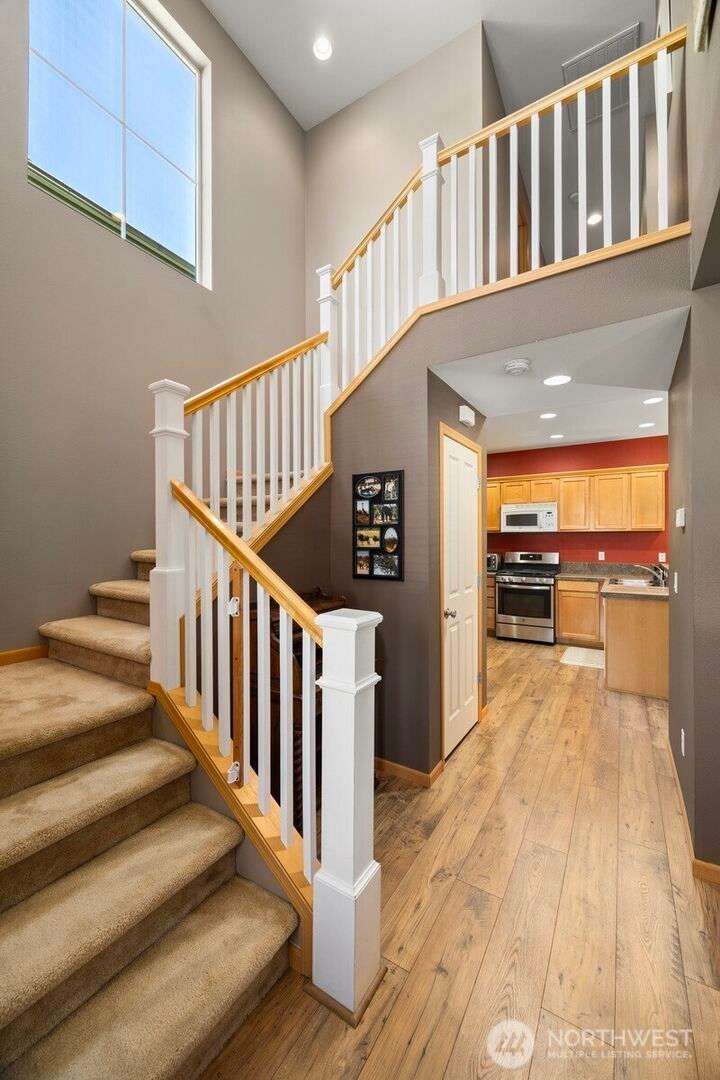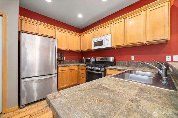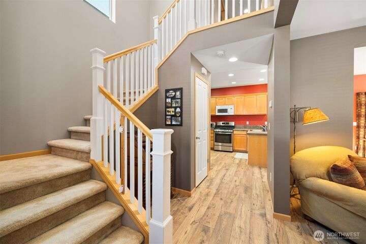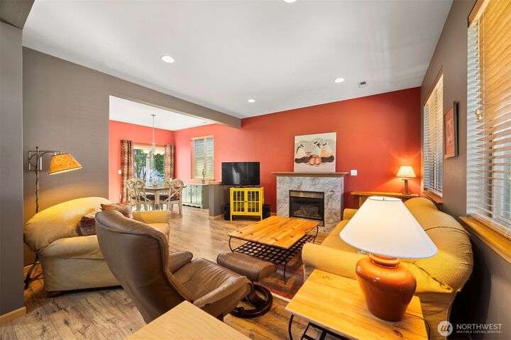 Experience 1,536 sq ft of inviting living space in the desirable Meridian School District. The open-concept main floor boasts new wide plank LVT flooring, a bright living area with a cozy gas fireplace, a spacious kitchen, and a large dining room. Upstairs features a large primary suite with a dual sink vanity in the 3/4 bath and a walk-in closet, plus two additional bedrooms that share a full bath and the laundry room. Outside, you will find a fully fenced backyard, with a patio that is ideal for barbequing and an attached 2-car garage with alley access, completing the package. Enjoy the playground and basketball court right across the street as well as living in this wonderful community in the Reserve at Cordata.