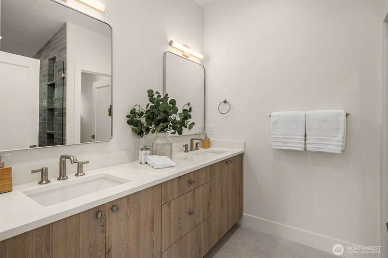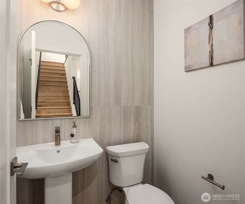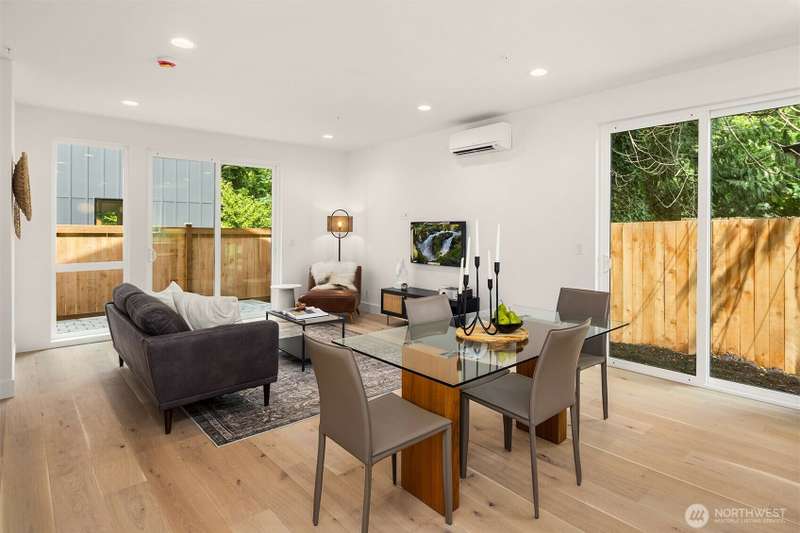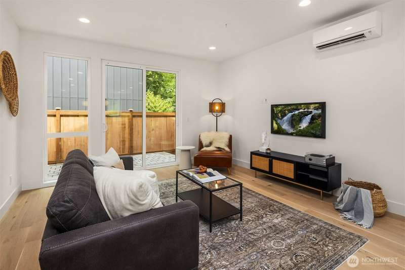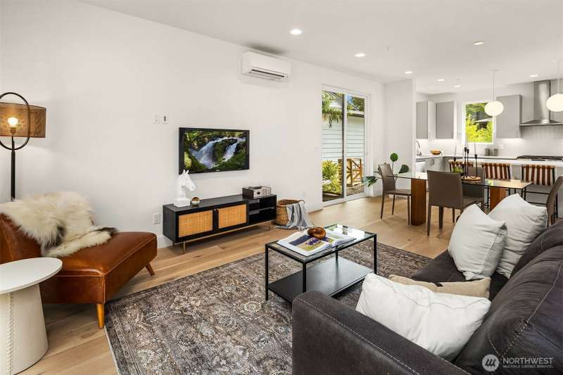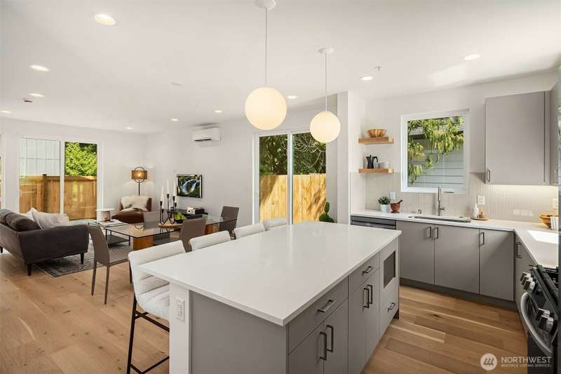 ID Construction Group presents a charming new cottage in Kirkland! The open-concept main floor is filled with natural light from floor-to-ceiling windows and features a stylish kitchen with gas range and large island with unique matte quartz counters. Double sliders open to a private fenced yard and patio—perfect for BBQs or soaking up the sun. Upstairs you'll find your secondary bedroom, full bath, and laundry with washer/dryer included. Primary suite includes well-appointed serene bath with heated floors. Dedicated off-street parking adds convenience. Ideally located just minutes from Juanita Beach parks, shopping, and dining options and an easy commute to downtown Kirkland or Bellevue.