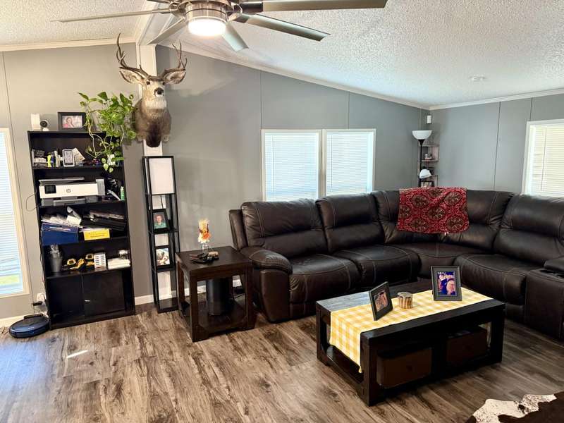 Many updates here to make this home absolutely move in ready. New vinyl planking throughout the whole home, sink, furnace and air conditioning new in 2025, with upgraded thermostat. All appliances will remain with the home, including the washer and dryer. New ceiling fans, new door knobs throughout the home, ADT alarm system with cameras will stay. All ceilings and walls have been repainted, with new receptacles. All anchors are up to code, and new heat tape has been replaced on the water pipes under the home. You will love the 54' x 27' outbuilding for projects, toys, or storage.