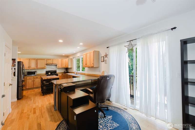 5 Bedrooms, yes 5! one on the main floor with a 3/4 bath. The other 4 Bedrooms and 2 full bathrooms upstairs. This home is on nearly 5 acres in peaceful Seabeck Neighborhood near the Seabeck Post office. Massive 2 car garage with 10 ft doors and paved outdoor parking. All appliances stay including W/D and a freezer in the utility/laundry room Well appointed Kitchen with a move around island, walk in pantry and vast counterspace and storage. Electric fireplace in living rooms adds coziness. Nice covered front deck to greet guests out of the rain.3 apple trees, coop area for chickens Plenty of land to put in vegetable or flower gardens