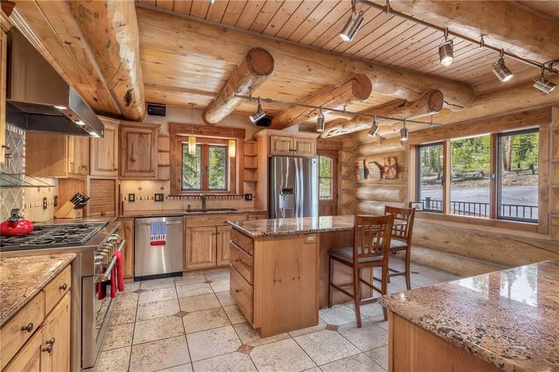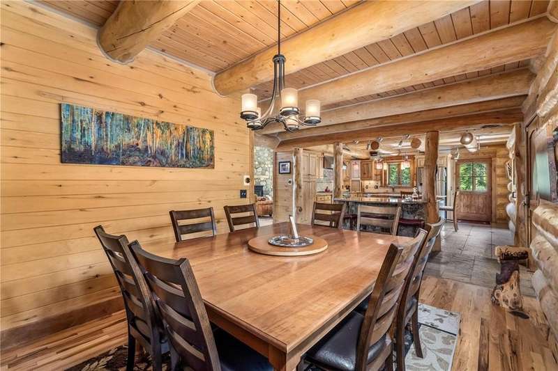 Tucked on over 5 acres of private and pristine land, this home offers a rare opportunity to immerse yourself in the natural beauty of the Rockies, yet is only 10 min. from the charm and energy of downtown Breckenridge. Nearly 4,000 square feet of thoughtfully designed living space, this home features 4 bedroom and 4 bath, providing ample room for family living and hosting guests. There are 2 versatile bonus rooms that can easily be adapted to fit your needs, whether extra bedrooms, a cozy office, or a home gym. This home exudes a sense of rustic warmth and timeless craftsmanship. The main living area features vaulted ceilings and large windows that frame panoramic views of the mountains. The wrap around deck provides easy indoor/outdoor entertainment for those long summer nights or taking in the views with your morning cup of coffee. Second living space on the lower level serves as a perfect retreat for movie nights and the remodeled kitchen is a home chef’s delight. Designed with both practicality and mountain living in mind, a generous mudroom provides the perfect spot to shake off the dirt and gear after a day on the trails. Whether it's wiping off muddy paws or kicking off ski boots, this space ensures that the rest of the home stays tidy and ready for relaxation. Oversized two-car garage provides ample room for your vehicles and all the outdoor gear you need for an active lifestyle. The large driveway offers easy access and parking, with room to store snow in the winter months. The home also offers a short stroll to pick up Peaks trail to get in some steps on your way to happy hour. This log home is not just a place—it’s an experience. It offers a rare chance to live in harmony with nature, all while being close to the best that Breckenridge has to offer. Whether you’re seeking a year-round retreat or a seasonal escape, this home is a true gem in one of Colorado’s most coveted locations.