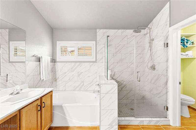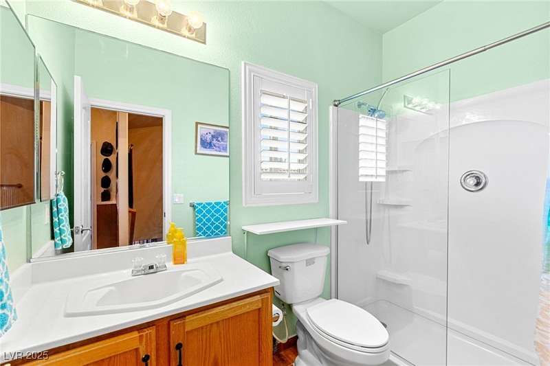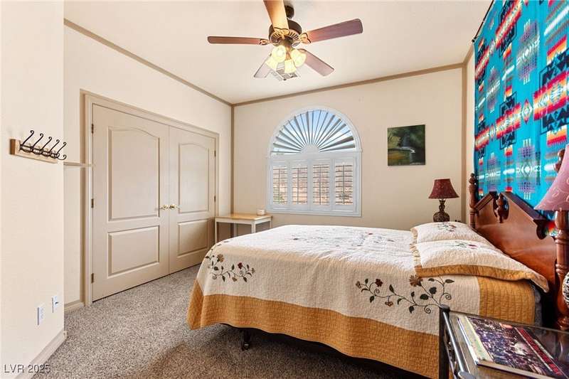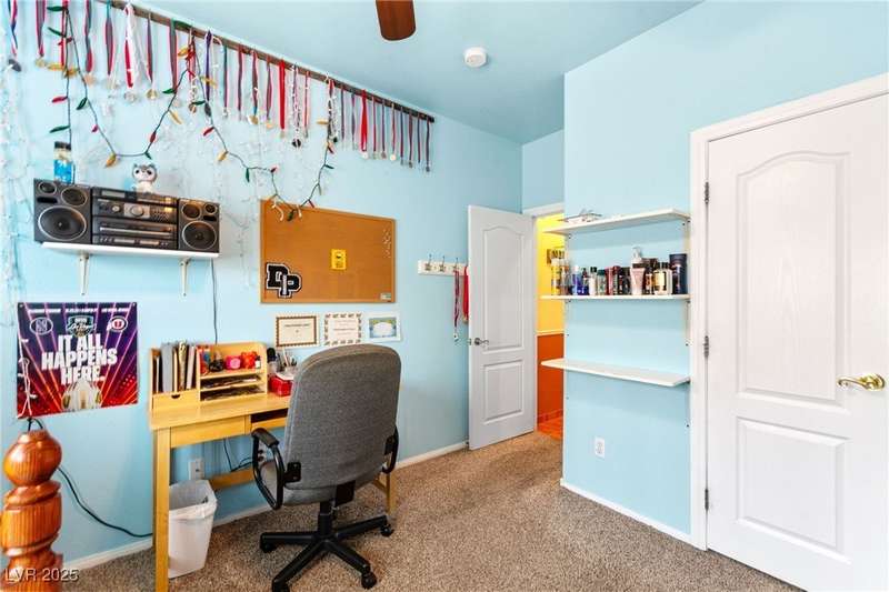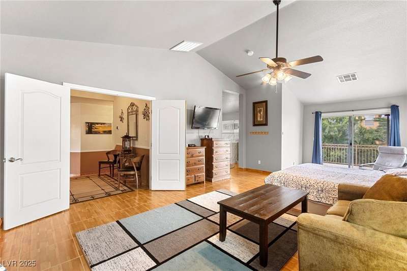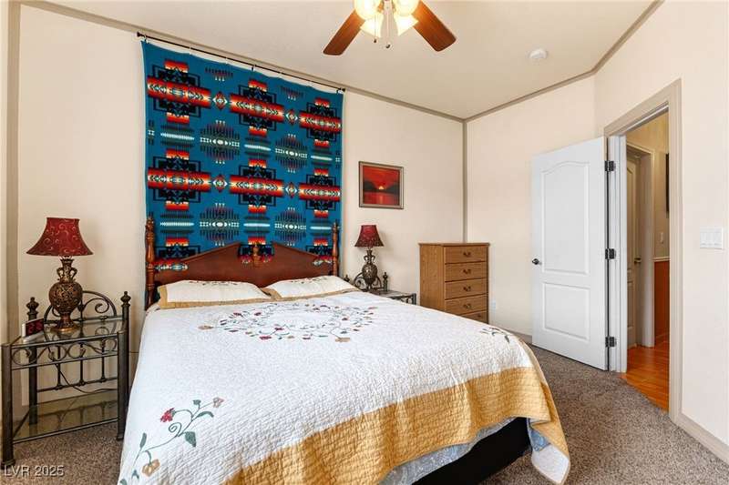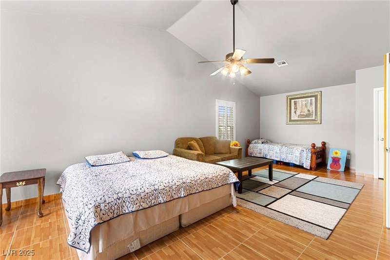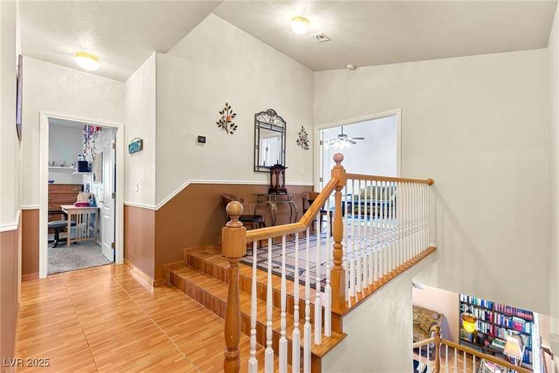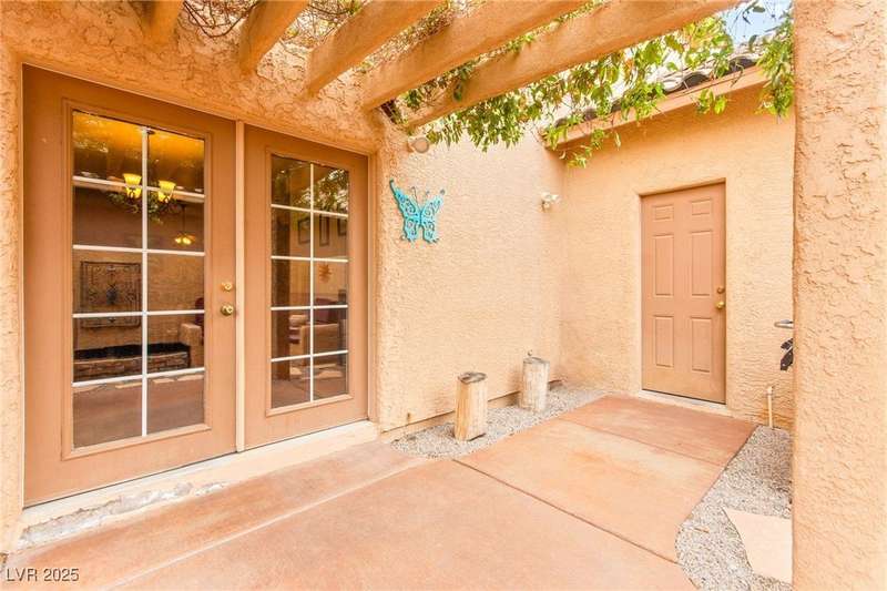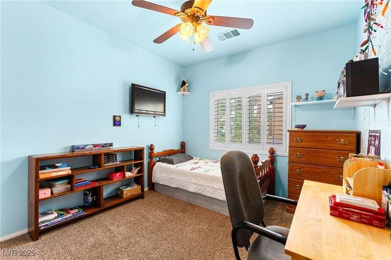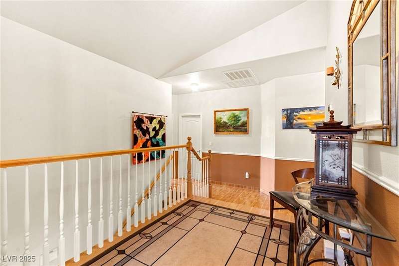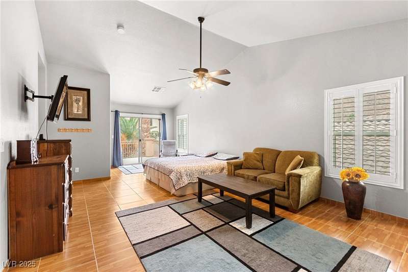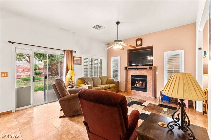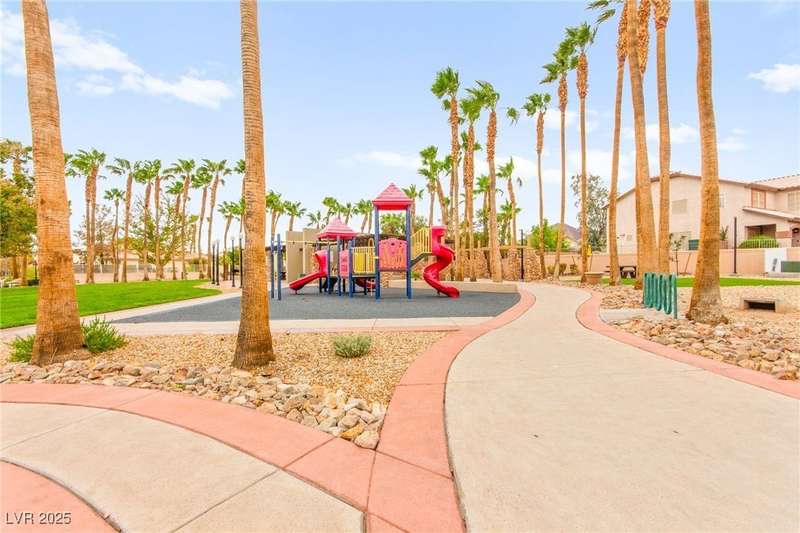 Located in the desirable guard-gated community of Palm Hills with its own park and just steps from the popular McCullough Hills Trailhead, this 4-bedroom, 2.5-bathroom home blends comfort, efficiency, and lifestyle. Inside, soaring 10-foot ceilings and vaulted details upstairs create an open, airy feel. The floor plan features separate living and family rooms, a dining room, and a kitchen with a breakfast nook—perfect for both everyday living and entertaining. The spacious primary suite includes vaulted ceilings and a private balcony with automated dropped down shade, offering a relaxing retreat. Additional highlights include a workshop area in the garage, newer windows (within 5 years), an HVAC system replaced in the last 7 years, and solar panels for energy efficiency. Step outside to a beautifully landscaped backyard with a sparkling pool and spa, surrounded by stonework and mature shrubs, creating a private oasis for year-round enjoyment.