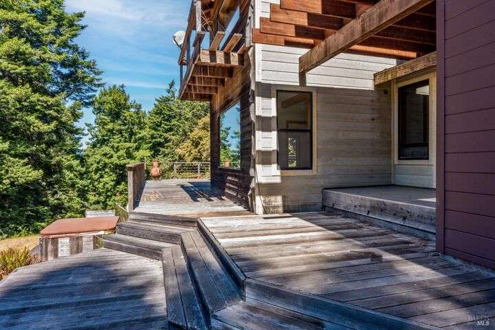 Incredible home located on nearly 80 acres. Total privacy and quiet at this unique forest & ocean view homestead. The home, built in 1988, is in need of TLC. It includes 3,300 sq ft of living area including a formal entry, 4 Bedrooms & 3 Bathrooms plus 3 additional rooms including a spa room, office and art room. Tile with wood inlay flooring in the kitchen & dining areas, carpet in bedrooms and hallways. The kitchen boasts a center island with 6 burner gas cook top & artistic copper hood designed by local metal forger, ample cabinetry & breakfast area. Heat comes from wood stove, 2 fireplaces and electric baseboard. Skylights and large windows throughout the house brighten up the living areas. A large basement includes the laundry and wine cellar. An attached three car garage along with some outbuildings offer storage for many vehicles and/or workshop space. Expansive decking, nut trees, beautiful redwoods, other conifers & grassy knolls to enjoy the great outdoors. Water source is a natural spring. Close to Schooner Gulch & Bowling Ball Beaches, the City of Point Arena, Moat Creek Coastal Access, and the Pelican Bluff Trail.