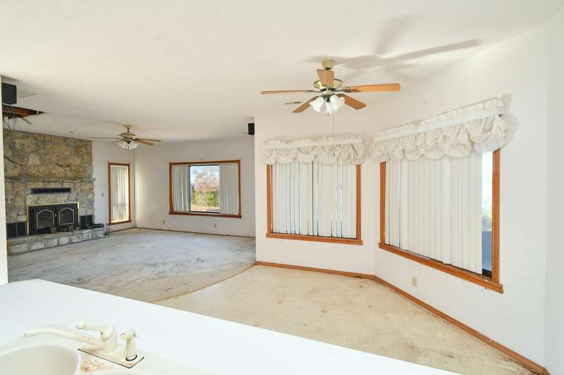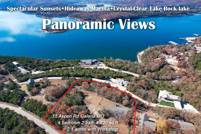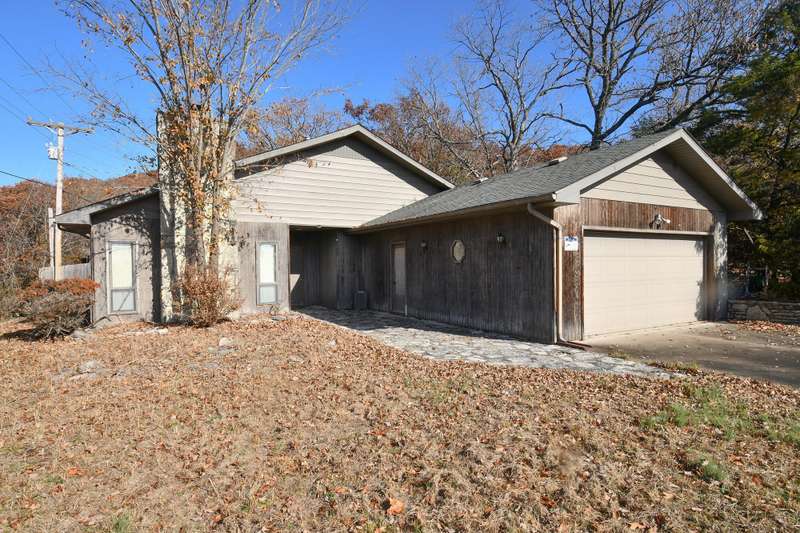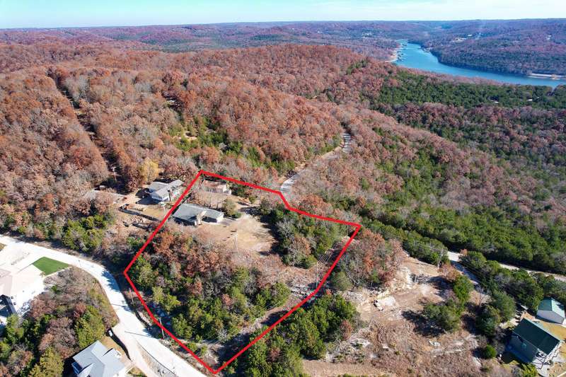 Amazing Panoramic views of Table Rock Lake You will adore the Privacy & Peaceful location. All utilities in place & so many possibilities! Plenty of room to store your boat & other watercrafts, guest's cars, tool & more in the huge steel workshop. Perfect breathtaking loccation for a private retreat or potential multi-home development. Multiple parcels included in sale. Value is in the exceptional land. However, there is a 4 bedroom, 2 bath home that could be renovated. Slab foundation, zero entry with large, enclosed sunroom with delightful views. (Listed Square footage does not include the sunroom.) Home had a pipe break, water damage was removed, but the home has not been refinished. This is a slab home; new flooring & sheetrock repairs are the main needs for the home. Home has attached 2 car garage. This is a walk-in home. No Steps, spacious rooms and hallways.