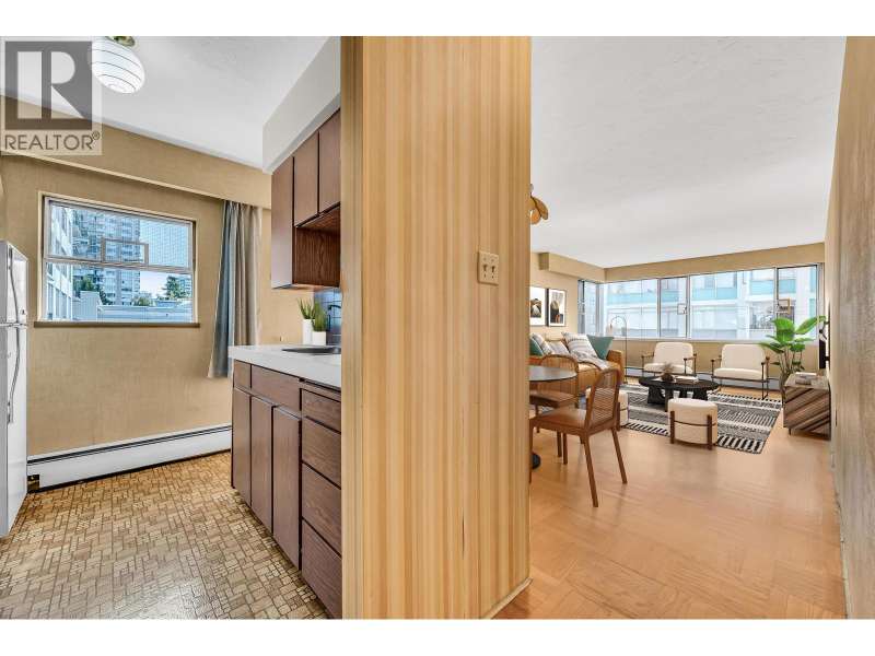 Experience the best of West of Denman living! This bright, corner south/west-facing 1-bedroom suite is full of natural light and ready for your ideas. Easily converted to a junior two-bedroom, this home accommodates house-sized furniture, including a king-sized bedroom. One block from the beach, seawall, and Stanley Park, and surrounded by shops and cafes in a charming, tree-lined neighbourhood. Unbeatable value per square foot for freehold land in this prime location. Solid concrete construction, updated elevator, roof, boiler, and piping. Enjoy free shared laundry and a sun-drenched common rooftop deck with gorgeous English Bay views. 35% down. Adult-oriented building (19+), 100% owner-occupied-no pets or rentals ensures a peaceful community. Easy to show! (id:58403)