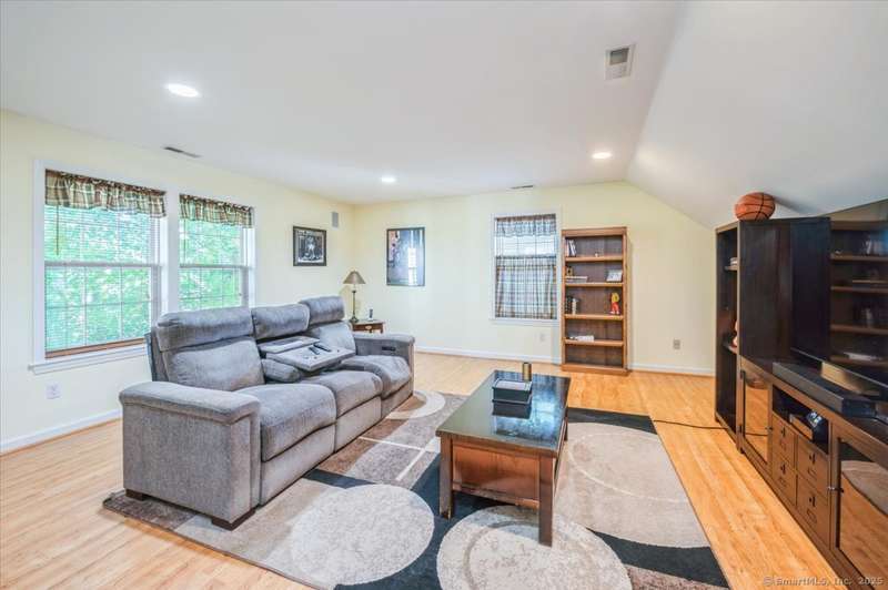 Immaculate colonial in the Twin Ledge Association. Spacious & bright with an open floor plan. Living room with a bay window and gleaming hardwood floors. The spacious family room has a gas fireplace and built ins and is open to the eat in kitchen. The kitchen has a gas range, microwave, dishwasher & stainless steel refrigerator with a space for a table and a door to the two decks. A half bath completes the first floor. There is a beautiful lower level recreation room with a the utility room and storage area. The second floor has a lovely master suite with two closets, one is a walk in plus a beautiful bathroom. The master bath has double sinks with granite counters, a whirlpool and a separate shower. There is a full bath in the hallway plus a guest room, office / bedroom and a large media room that could be a 4th bedroom. Central and a two car garage are a couple more features of this fine home in private setting.