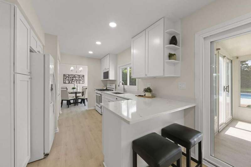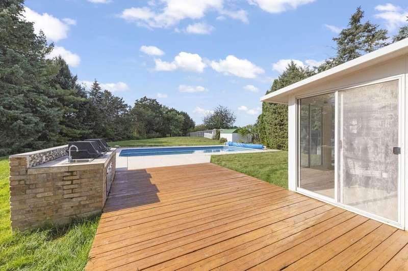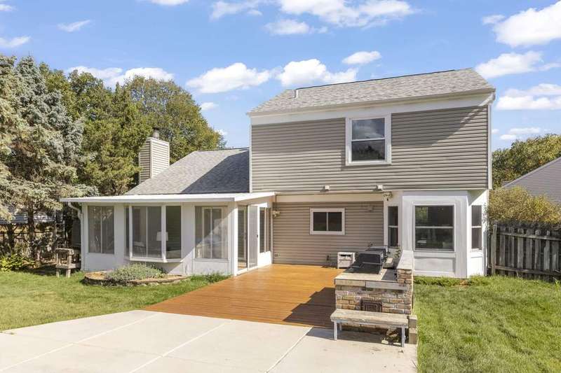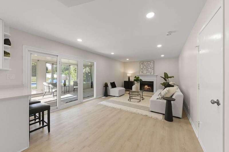 Tucked away on a quiet cul de sac within highly rated 204 School District, this beautifully renovated home rests on over a half acre lot, combining modern comfort with timeless charm. A full interior renovation completed in 2025 brings a brand new kitchen, 2nd story full updated bath, fresh neutral paint, luxury vinyl plank flooring on the main level, plush new carpet upstairs, and designer lighting throughout, creating a bright, sophisticated, and move in ready space filled with natural light. The main level offers an open, thoughtful layout that flows effortlessly from the living and dining areas into a spacious family room centered around a warm wood burning fireplace. Just off the family room, a bright three seasons room overlooks the expansive backyard, perfect for morning coffee or relaxing summer evenings. The stunning new kitchen features quartz countertops, white Whirlpool appliances, modern cabinetry with added storage and seating, and a seamless connection to the living spaces. A convenient first floor laundry and updated half bath add everyday functionality. Upstairs, you'll find three generous bedrooms and a beautifully renovated full bath. The primary bedroom overlooks the serene backyard and includes a cedar lined walk in closet. Outside, the expansive park like backyard, sitting on over a half acre of land, is a true private retreat surrounded by mature trees planted by the current owners for privacy in 1996. Designed for entertaining, it includes a large deck, built in outdoor kitchen, two storage sheds, and a garden ready for your favorite fruits and vegetables. The in ground pool was fully refurbished in 2022 with a new liner, coping, skimmer, filter, pump, and concrete deck, and is piped for a natural gas heater. Additional highlights include a Tesla charger, newer windows, newer sliding door to the sunroom (2023), a remodeled half bath (2023), newer roof and siding (2016), new furnace (2019) and a fully replaced driveway. This home is just minutes from restaurants, walking trails, Eola Library, Waubonsie High School, and Fox Valley Mall. With Rush Copley Hospital only a short walk away, it beautifully blends modern comfort, outdoor living, and everyday convenience. 2235 Highfield Court is a turnkey opportunity ready to welcome you home!