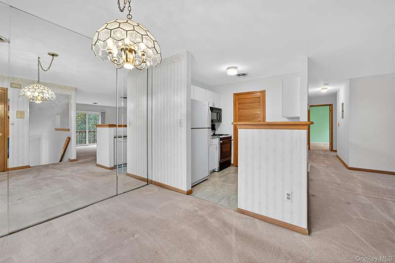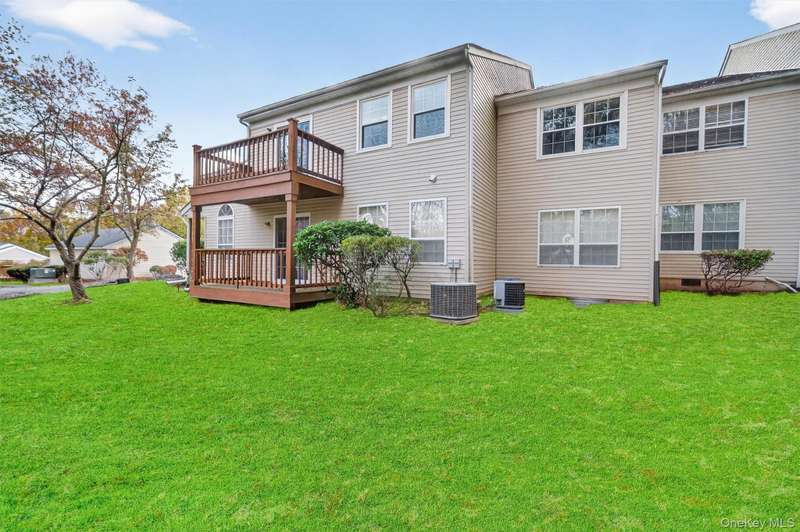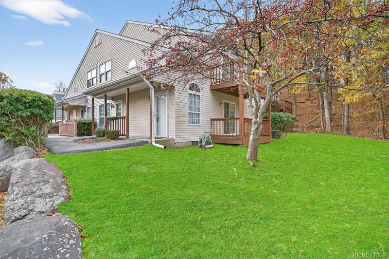 Welcome to Woodbury Heights a beautifully maintained and highly sought-after community in Highland Mills. This light-filled upper-level END UNIT offers effortless one-level living with an ideal blend of comfort, convenience, and privacy. Step inside to find a bright and inviting living space with plush carpeting underfoot and natural light streaming in. The galley-style kitchen features granite countertops and newer tile flooring, opening to a separate dining area perfect for meals and entertaining. Enjoy serene views of trees and open green space right from your private deck/balcony a peaceful spot for morning coffee or unwinding at day s end. Two generously sized bedrooms provide excellent closet space, including a primary suite with its own full bath. A coveted detached garage with remote, central air, and in-unit washer and dryer offer daily comfort and practicality. Residents of Woodbury Heights enjoy access to their own pool, and as a Woodbury resident you ll also have full use of the Woodbury Recreation facilities including the lake and beach, pool, playground, soccer fields, BBQ areas, and summer camp. Perfectly located for commuters and everyday convenience just 5 miles to the train to NYC, 3 miles to the NYS Thruway and major shopping, close to parks, the library, and Monroe-Woodbury Schools. Simply bring your furniture, settle in, and enjoy low maintenance living in a condo and community that has been truly loved and meticulously cared for.