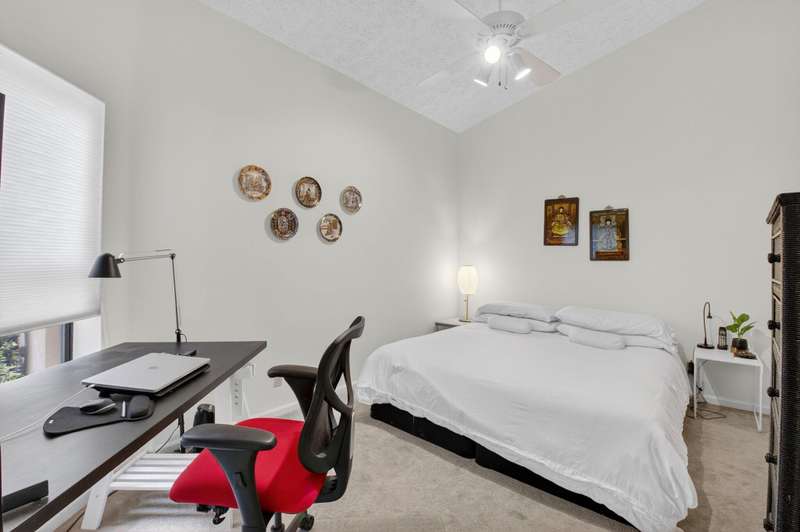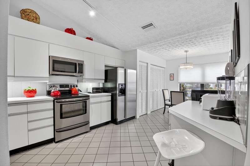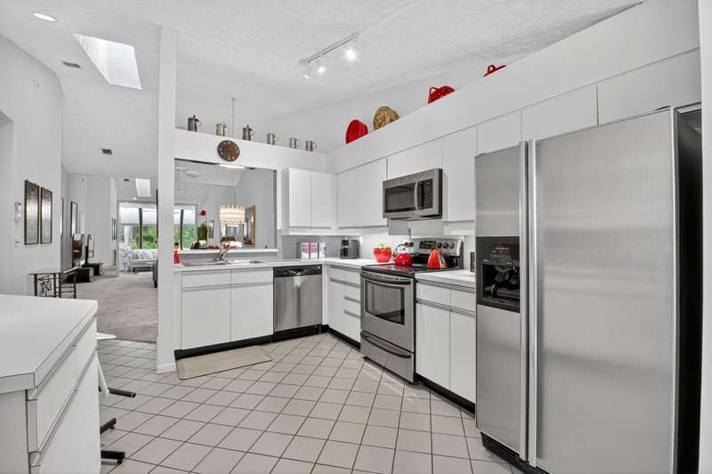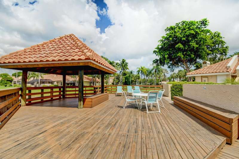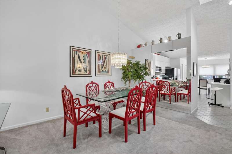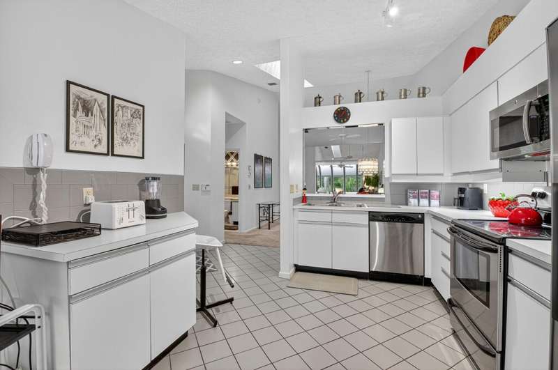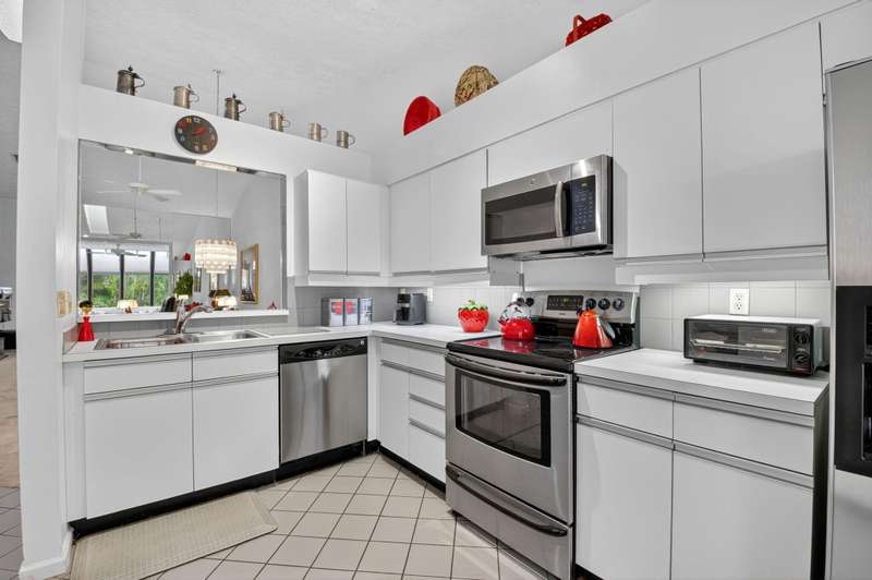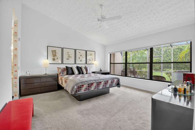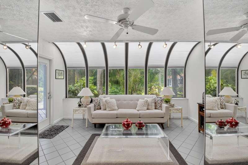 Spacious and inviting 2 bedroom, 2 bath villa with 1-car garage located in the highly sought-after Meridiana at Boca Pointe. This home offers vaulted ceilings with a skylight that fills the main living areas with natural light, creating an open and airy feel. Living and dining room provide plenty of space for entertaining or relaxing. The eat-in kitchen is ideal for casual meals and morning coffee. Versatile enclosed sunroom features pocket doors, closets, and a window, making it perfect as a 3rd bedroom, private office, or den. Additional highlights include a screened patio, garden views, A/C replaced in 2018 and water heater in 2016. Furniture can remain for added convenience, making this villa move-in ready. Meridiana has a subdivision pool and small clubhouse for residents to enjoy.
