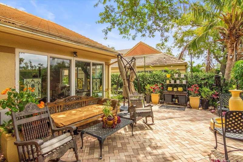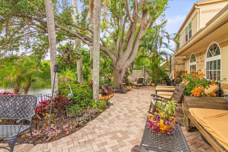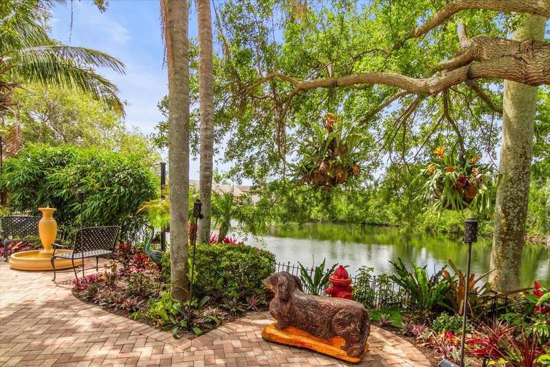 Welcome to this stunning upgraded gated community townhouse close to IMG Academy - where luxury, comfort and style come together in perfect harmony. From the moment you step inside, you'll be captivated by the rich hardwood floors, elegant Hunter Douglas window treatments and sophisticated louvered doors that enhance every room. The heart of the home is a chef's dream: a custom designed kitchen with premium cabinetry, sleek Carrera marble countertops, and top of the line appliances - ideal for both everyday living and effortless entertaining. This beautifully appointed three-bedroom, two-bath residence offers thoughtfully updated bathrooms featuring Kohler fixtures and timeless design. The spacious primary suite is located on the main level, offering tranquil pond views and direct access to lush, mature landscaping. Step outside to your private paved oasis featuring pond views, fountain and a firepit, perfect for unwinding or hosting guests in style. The home has a new HVAC (2025), PGT hurricane windows, 2018 tile roof and underlayment, expanded sunroom, 2 car driveway, recessed lighting, fans and much much more. The community features a clubhouse, two pools and tennis courts for you to enjoy. Fantastic location just minutes from IMG Academy, IMG Golf and Country Club, restaurants and shopping. Short drive to downtown Sarasota and beautiful Anna Marie Island beaches.