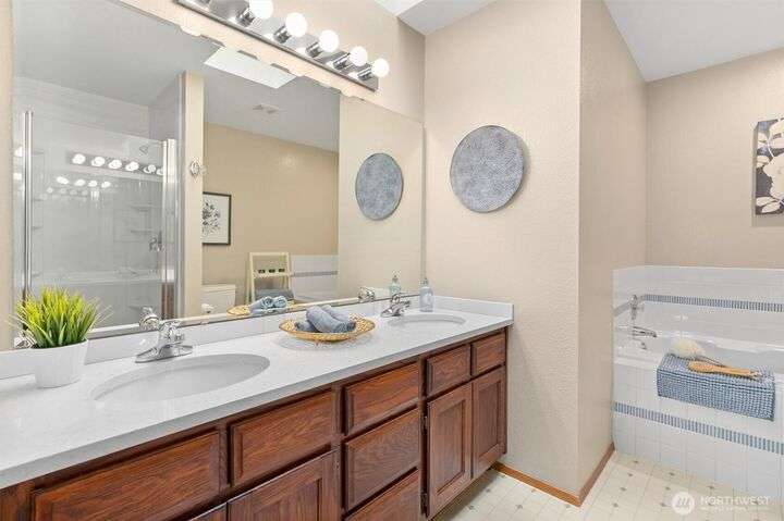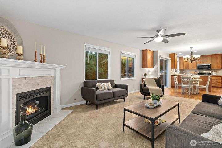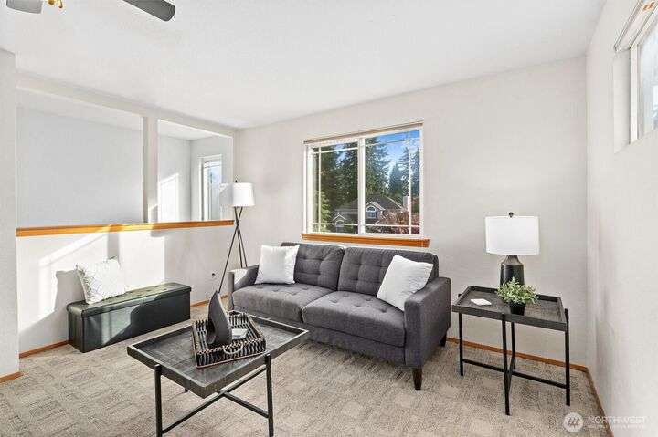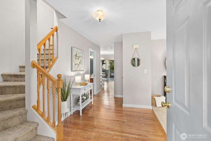 Gorgeous 4 Bedroom/2.5 bath home in desirable Silver Lake! Large .22 acre beautifully manicured corner lot in a quiet cul-de-sac setting. Freshly painted exterior & interior & hardi-plank siding. Hardwood floors, formal living and dining room & updated kitchen w/quartz countertops, subway-tile backsplash, SS appliances & new cabinets. Loads of window for tons of natural light. Large family room off kitchen has a cozy gas fireplace & slider to your Trex deck & fully-fenced backyard. 1/2 bath on main too. Upstairs is a huge bonus room that's perfect for movie & game nights, a laundry room, hall bathroom and 4 bedrooms. Primary bedroom w/ensuite & walk-in closet. Don't miss the office in the garage! There's even A/C & a sprinkler system!