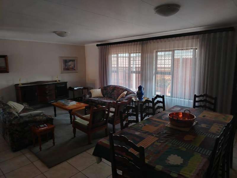 3 Bedroom Simplex for Sale in Eldoraigne SOLE MANDATE Beautiful 3-bedroom simplex for sale in Eldoraigne Retirement Estate. This spacious freestanding home is located in the highly sought-after Eldoraigne Retirement Estate. The unit offers a large open-plan dining and lounge area, as well as an open-plan kitchen with granite countertops, a breakfast nook, and additional installed cupboards for ample storage. There are three generous bedrooms, one of which can easily be used as a home office. The main bedroom features an en-suite bathroom with a bath, while the guest bathroom is fitted with a shower. The lounge opens onto a double covered patio with a built-in braai and a large garden, perfect for outdoor entertainment. Additional features include: Double automated garage with built-in cupboards Double carport Backup electrical system with inverter and batteries Easy walking access to estate facilities Eldoraigne Retirement Estate is designed for a healthy and active lifestyle, offering: Frail care 24-hour panic button for medical and security support Hair and beauty salon Tuck shop Dining hall Library The estate is close to Eldo Square, Mall@Reds, and several churches. This property is ideal for retirement or investment, offering a secure ?Ç£lock-up and go?Ç¥ lifestyle for the independent resident. If you are interested in viewing this property or need more information, please contact me.