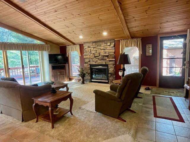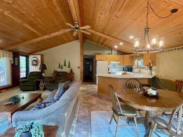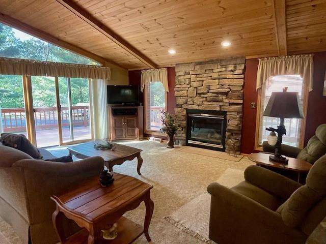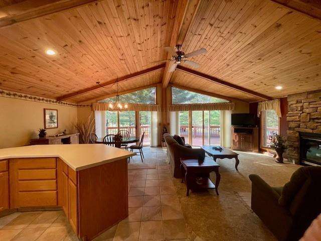 Looking for a quick close? This very well-maintained Lake Arrowhead property is a great find! Set back on a .53-acre lot with a long blacktop drive, it offers privacy. Walk to the lake on surrounding greenspace or a short walk via the road! Soak in the up-north vibe of the home with cedar siding and a prow front design as well as the inside! Enjoy the comfort of cathedral knotty pine ceilings, hardwood floors, open concept living, and a stunning stone gas fireplace--perfect for cozy winter nights. Other seasons, relax on the wrap-around deck and watch the wildlife. A full basement provides storage or future living space, plus a 24x24 garage and yard shed for all your gear. The Town of Rome is a recreational haven with golf, lakes, trails, and more!