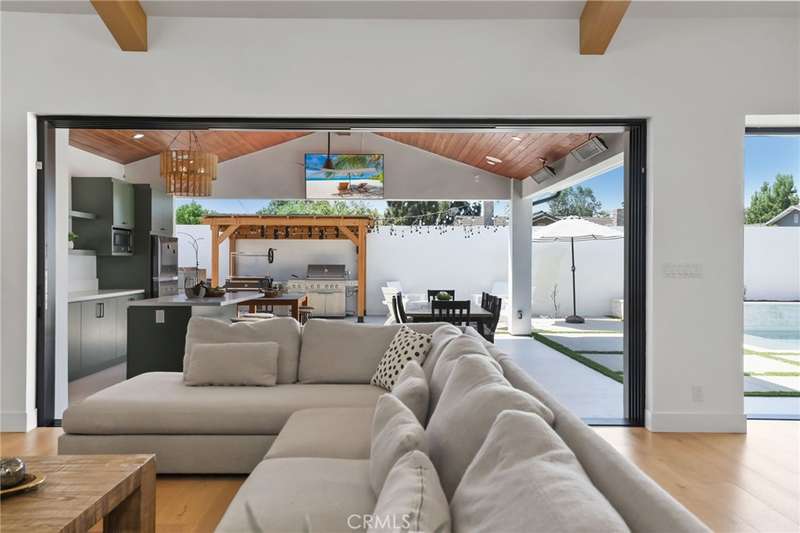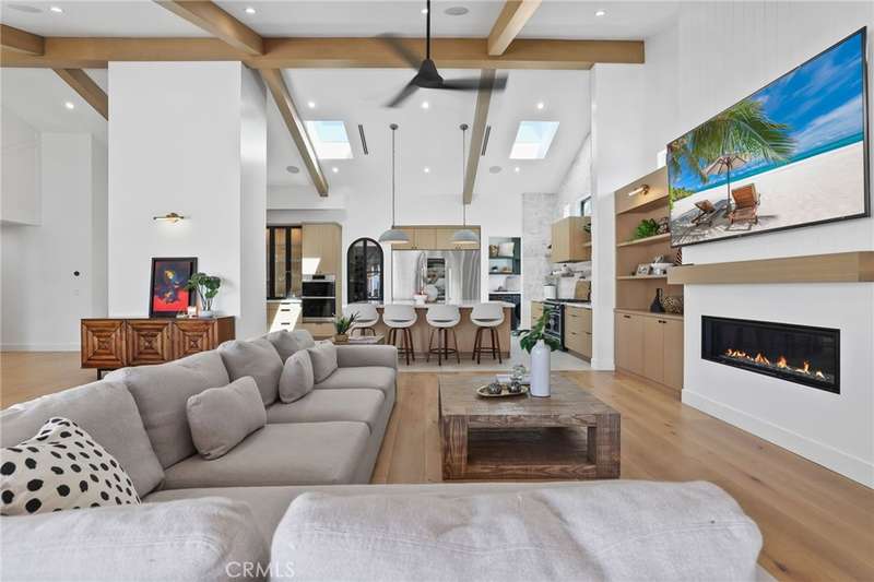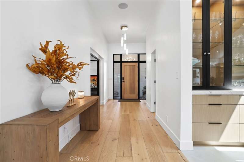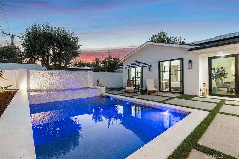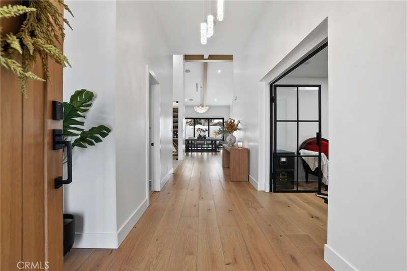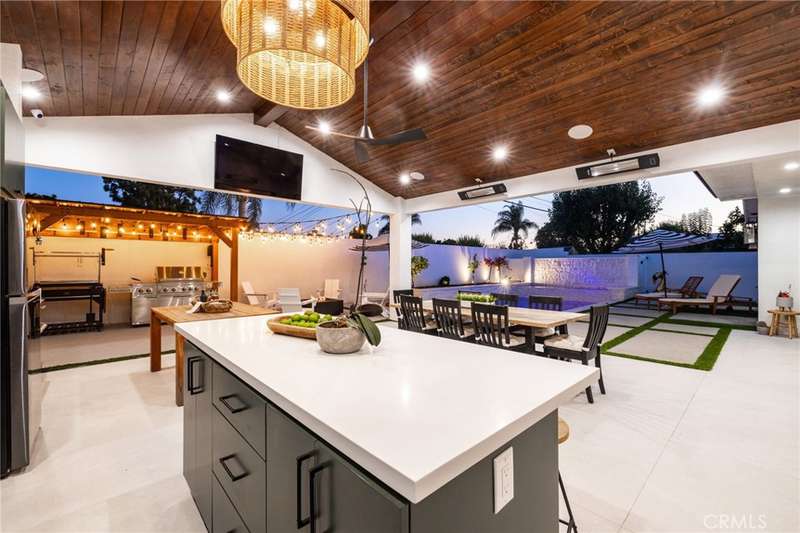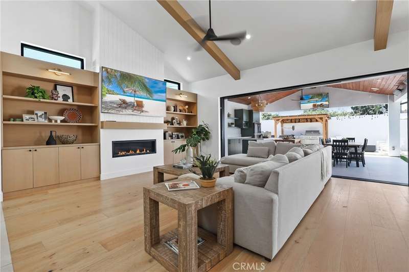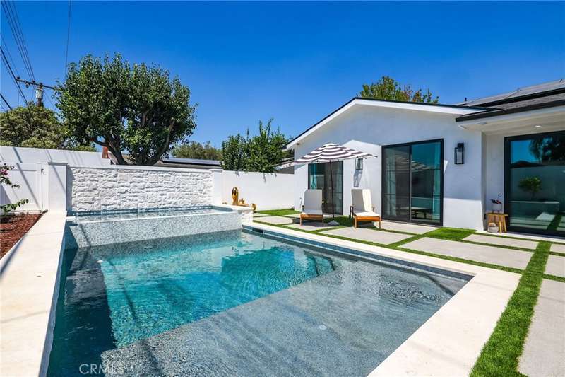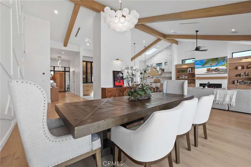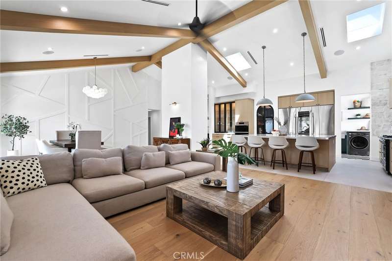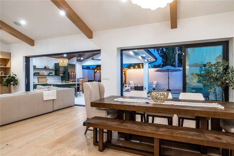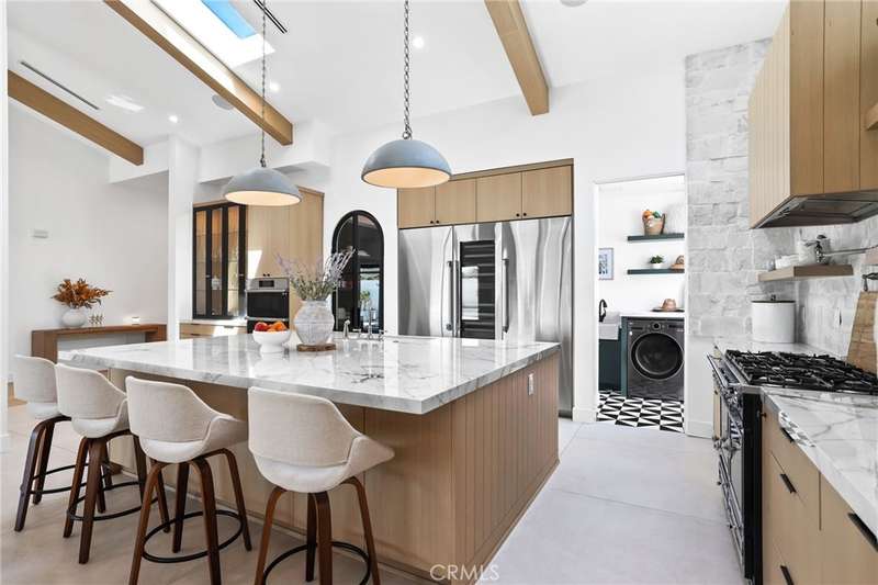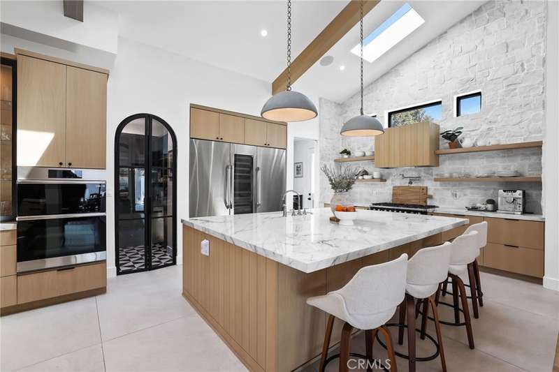 Sophistication Meets Relaxation in this expanded & professionally remodeled 2024 Rossmoor Estate. Set on a large lot with sparkling pool/spa in an A+ tract location, this 4-bed, 5-bath plus office offers 2,965 sq ft of refined interiors, 479 sq ft of seamless indoor-outdoor living (total 3,444) and an oversized 2-car garage. Excellent curb appeal welcomes you with a solid oak wood entry and garage door. Step into a high-ceiling foyer with skylights, iron-glass doors to a private office or formal dining room, direct garage access, and a 3/4 guest bath. At the heart, a show stopping gourmet kitchen features custom oak cabinetry, 6-burner range, double ovens, porcelain island, Mediterranean backsplash, Dacor appliances, La Cornue French range, and walk-in pantry. The kitchen flows to a daily dining area and living room with high faux-beam ceiling, oak built-ins with LED lighting, and fireplace. Dual 16-ft sliders open to the landscaped yard with covered patio, outdoor kitchen, BBQ, pizza oven, bar, and fruit trees. The primary suite offers a walk-in closet, dual-sink vanity, plus three additional bedrooms--two with en-suites and pool views. Throughout: engineered European white oak floors, custom-stained Hemlock ceilings, skylights, and solar tubes. Upgrades include owned solar, two new AC/heating units, updated electrical, new windows/doors, and built-in surround speakers integrated with phone controls. In the award-winning Los Alamitos School District, this 2024 remodel blends modern luxury, smart tech, and timeless craftsmanship.