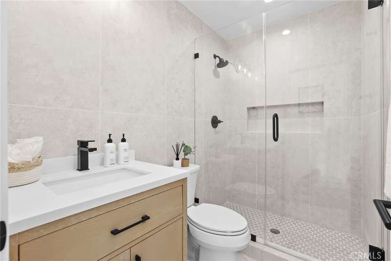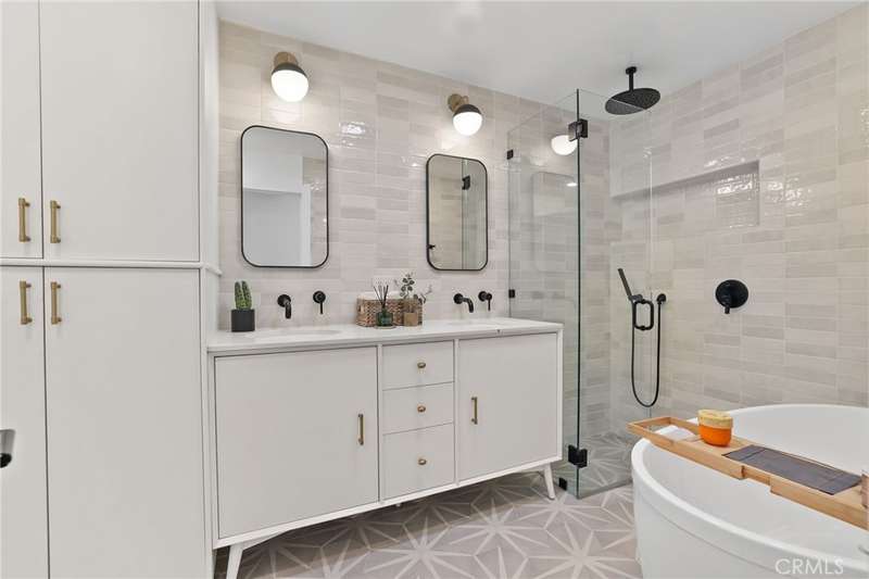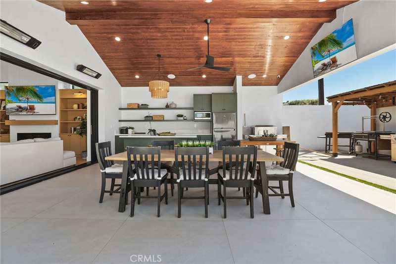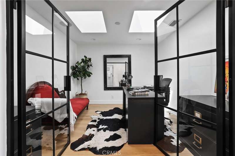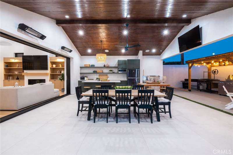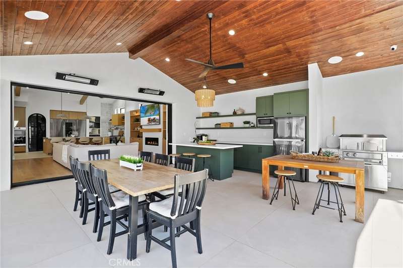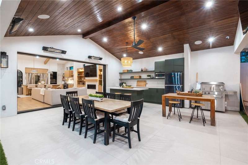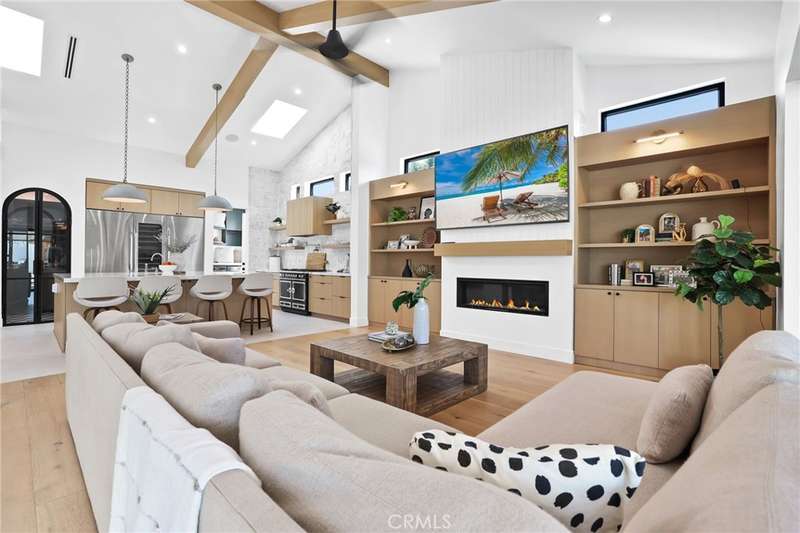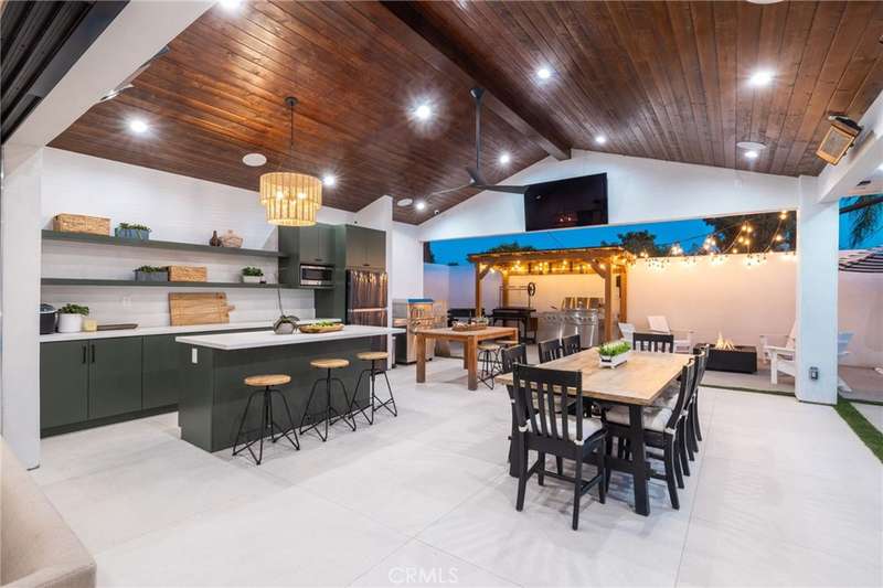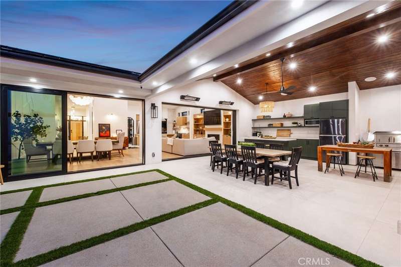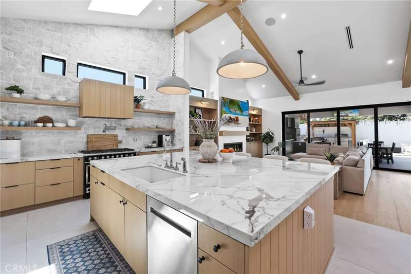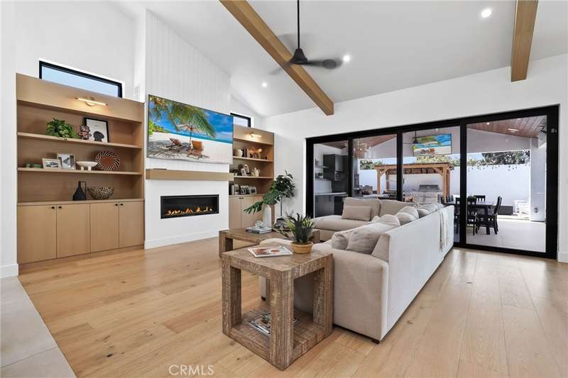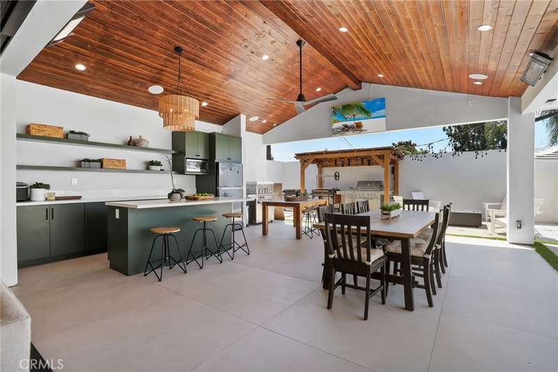 Sophistication Meets Relaxation in this expanded & professionally remodeled 2024 Rossmoor Estate. Set on a large lot with sparkling pool/spa in an A+ tract location, this 4-bed, 5-bath plus office offers 2,965 sq ft of refined interiors, 479 sq ft of seamless indoor-outdoor living (total 3,444) and an oversized 2-car garage. Excellent curb appeal welcomes you with a solid oak wood entry and garage door. Step into a high-ceiling foyer with skylights, iron-glass doors to a private office or formal dining room, direct garage access, and a 3/4 guest bath. At the heart, a show stopping gourmet kitchen features custom oak cabinetry, 6-burner range, double ovens, porcelain island, Mediterranean backsplash, Dacor appliances, La Cornue French range, and walk-in pantry. The kitchen flows to a daily dining area and living room with high faux-beam ceiling, oak built-ins with LED lighting, and fireplace. Dual 16-ft sliders open to the landscaped yard with covered patio, outdoor kitchen, BBQ, pizza oven, bar, and fruit trees. The primary suite offers a walk-in closet, dual-sink vanity, plus three additional bedrooms--two with en-suites and pool views. Throughout: engineered European white oak floors, custom-stained Hemlock ceilings, skylights, and solar tubes. Upgrades include owned solar, two new AC/heating units, updated electrical, new windows/doors, and built-in surround speakers integrated with phone controls. In the award-winning Los Alamitos School District, this 2024 remodel blends modern luxury, smart tech, and timeless craftsmanship.