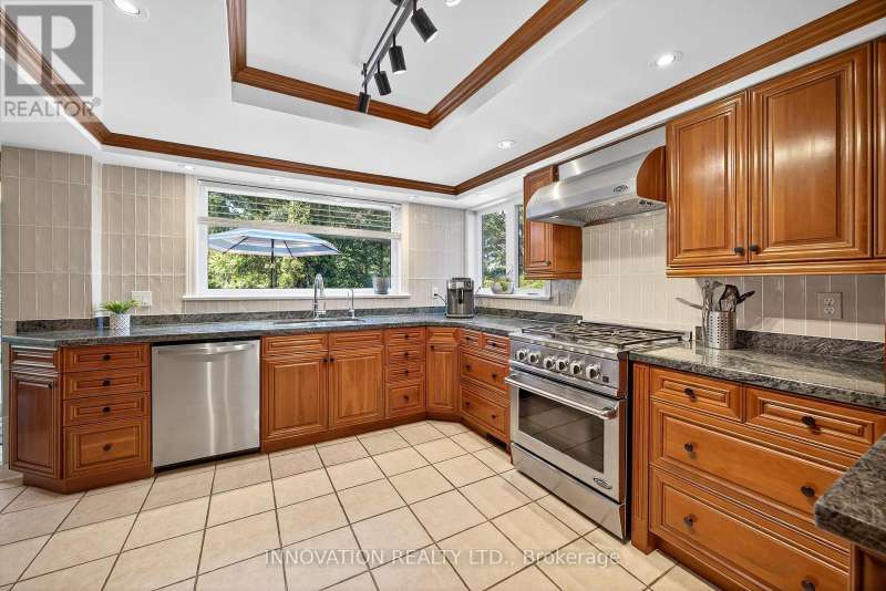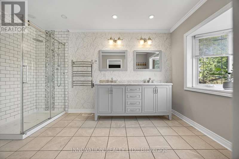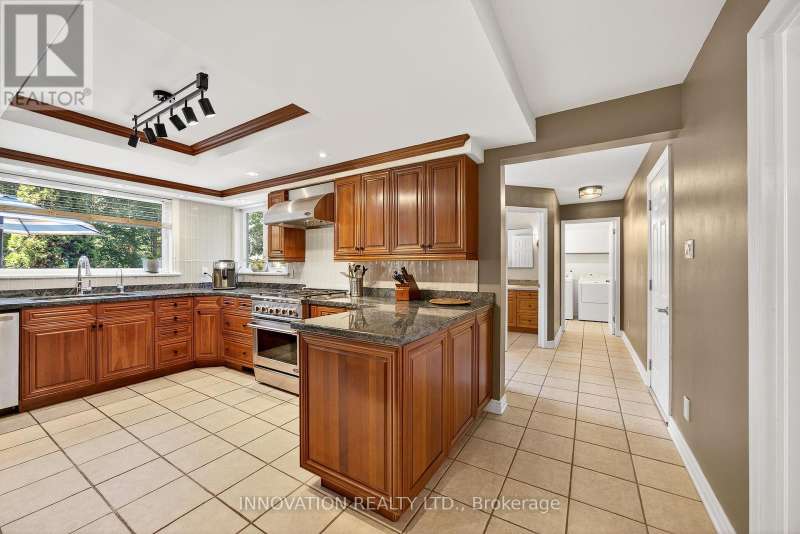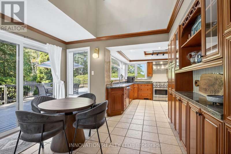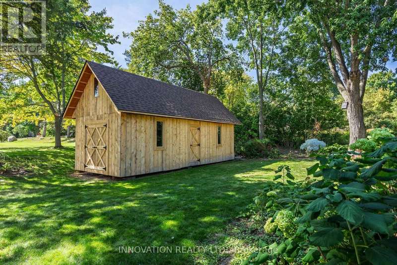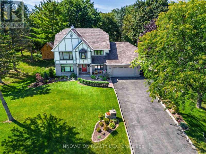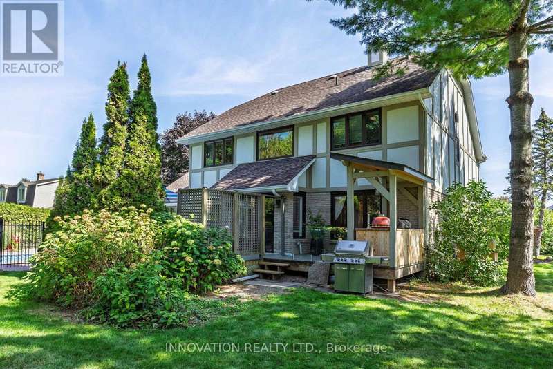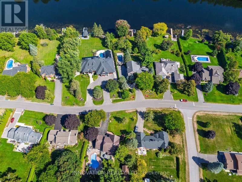 Located on one of Manotick's most sought-after streets and surrounded by prestigious multi-million dollar residences, this elegant family home combines timeless charm with modern comfort. Perfectly positioned within walking distance to the Rideau River, local parks, boutique shops, and the vibrant restaurants of downtown Manotick, the lifestyle here is truly unmatched. Set high on the lot with beautifully landscaped grounds, this property makes a stunning first impression. Inside, the main level offers an ideal blend of formal and casual living spaces. The gracious living room and dining room are perfect for entertaining, while the bright, well-appointed kitchen with granite counters and new appliances flows seamlessly into the family room, centered around a striking double-sided brick fireplace. The practical mudroom area includes an updated powder room, laundry, and direct access to the insulated garage. Step outside to the private backyard oasis designed for both relaxation and entertaining. Here you'll find manicured gardens, a sparkling heated saltwater pool, a fully equipped outdoor kitchen, and a spacious patio ideal for summer gatherings. A large storage shed adds functionality and space for seasonal items, tools, or pool equipment. Upstairs, a newly carpeted staircase leads to the bedroom level, where three generously sized secondary bedrooms share an updated family bath. The primary suite is a true retreat, complete with river views, a walk-in closet, and a luxurious ensuite designed for relaxation.The fully finished lower level expands the living space with a versatile recreation room, a fifth bedroom, and a full bathroom ideal for guests, in-laws, or a home office setup. Lovingly maintained with a long list of quality updates, this home offers both elegance and functionality in one of Ottawa's most desirable communities. 24-hour irrevocable on offers. (id:6509)
