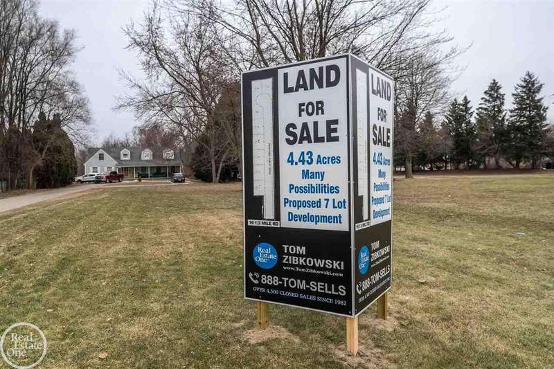 4.43 acre parcel in prime area of Sterling Heights. This property has many possibilities and is in a great location! See attached 7-lot development drawing, could be multiple. There is an existing home on property that is 2,600 sq. ft., 4-bedrooms, 2 full bathrooms, granite countertops, new cabinetry throughout and full basement.