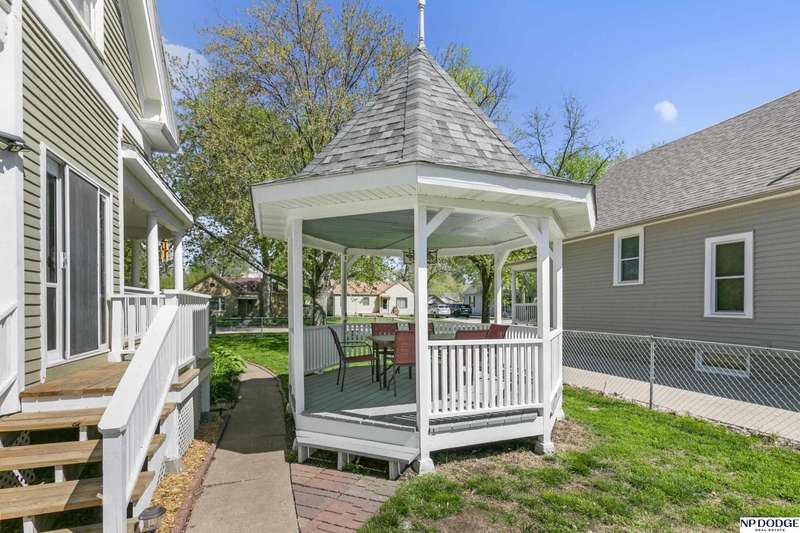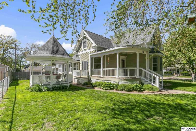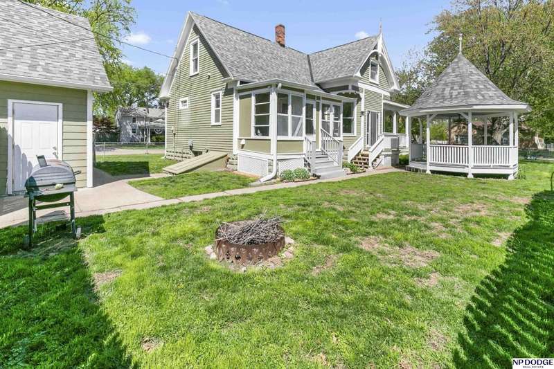 This home sits on a large fenced in corner lot with a gazebo and a covered front porch. The home has character and charm from 1905 and has been meticulously maintained and updated. The wood floors and large trim details on the main floor add to the inviting and open layout. This beautiful home has 2 bedrooms, a bathroom, and a laundry room on the main level as well as 2 additional bedrooms and an office space on the second level. There are 2 detached garages for a total of garages for 3 cars! The new roof in 2024 is a plus. All measurements are approximate.